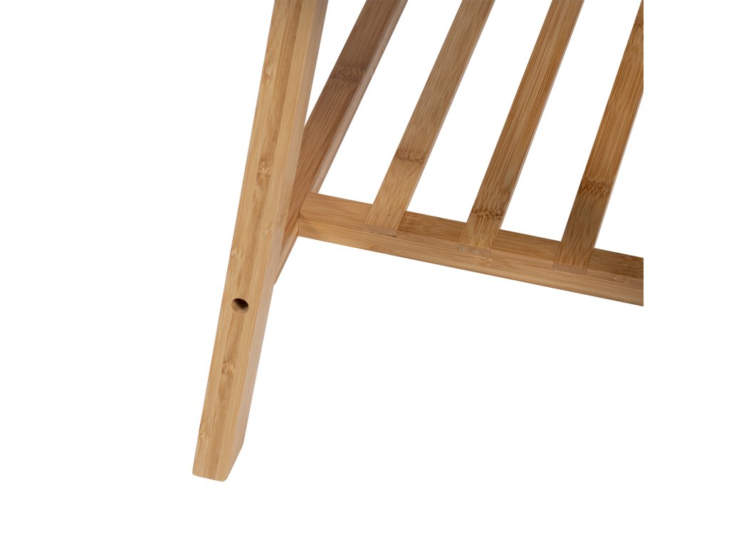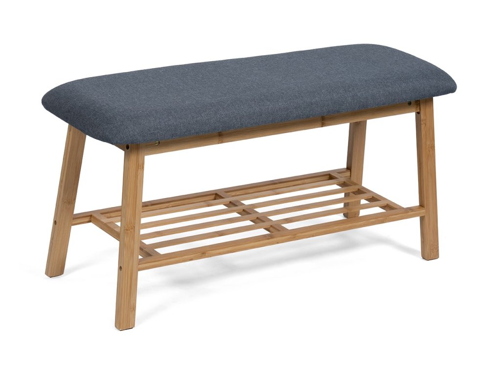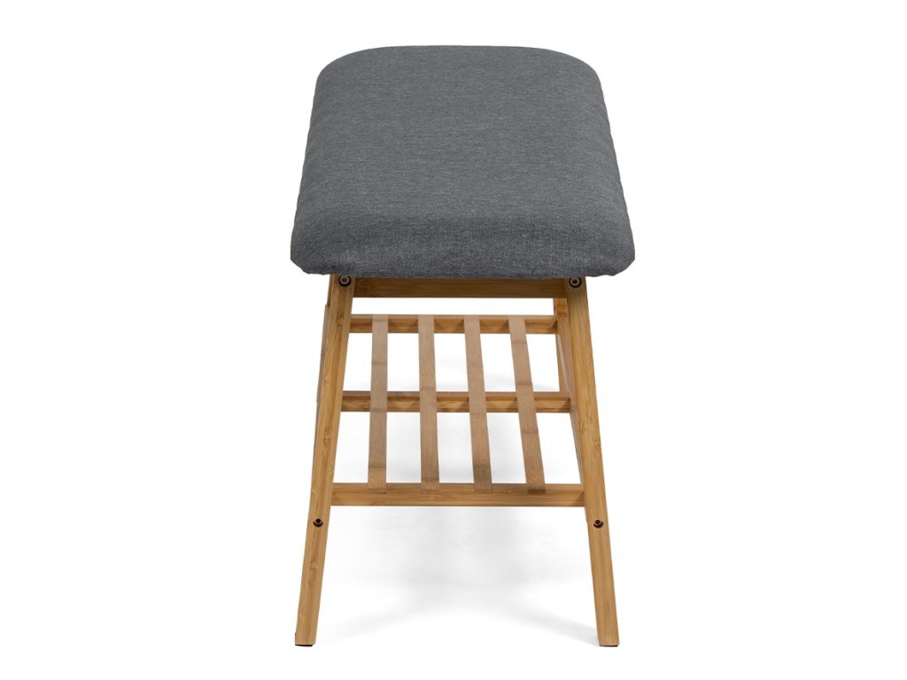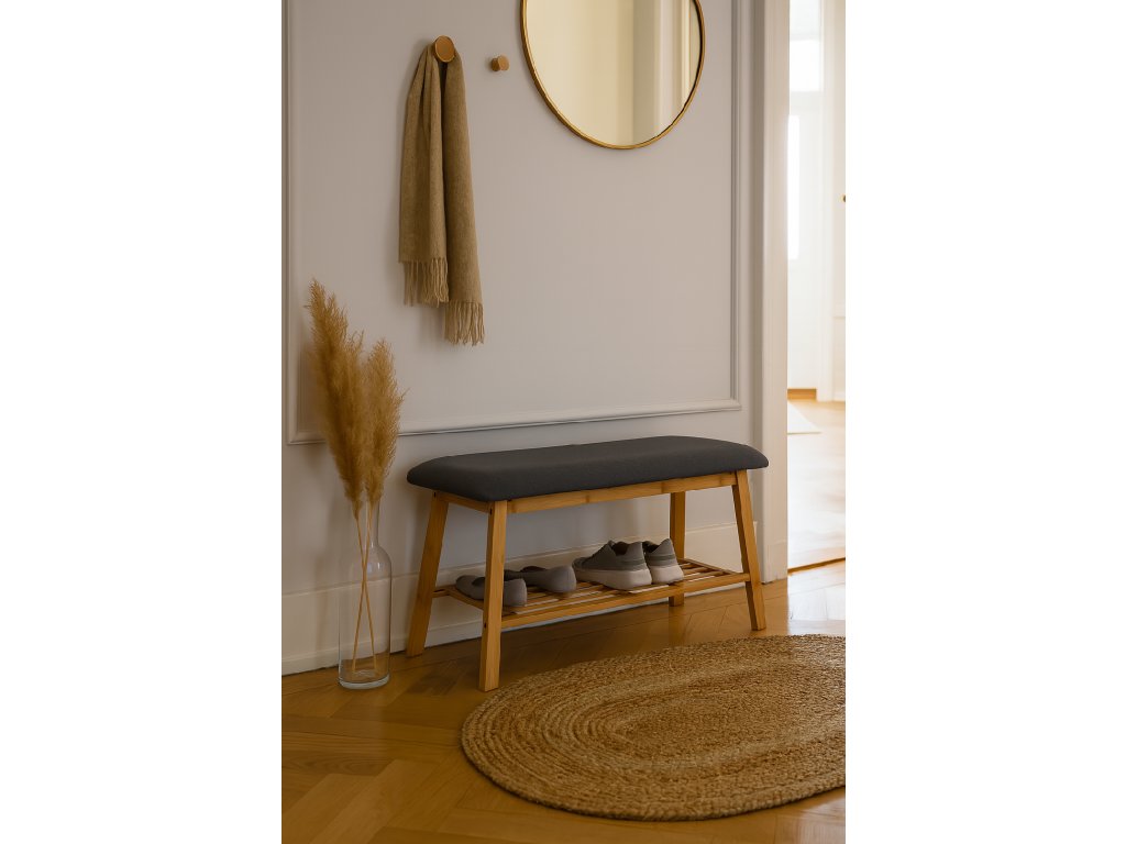 Štýlový botník disponuje pohodlným čalúneným sedákom v šedej farbe pre ľahké obúvanie. Konštrukcia z pevného dreva zaisťuje stabilitu a odolnosť. Spodná roštová polica poskytuje dostatok miesta na uloženie obuvi. Bambusová lavica BENCA prináša kombináciu praktického úložného priestoru a sedenia v jednom kuse nábytku.
