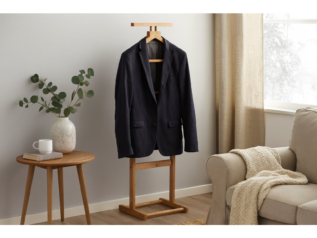 Praktický stojanový vešiak na oblečenie prináša nadčasový design. Vešiak je vybavený horným ramienkom na sako či košeľu a tyčami na nohavice či doplnky. Stabilná základňa zaisťuje pevnosť a odolnosť. Vešiak LUNO bude ideálny do spálne, šatne alebo predsiene. Spája funkčnosť, jednoduchosť a elegantný vzhľad.