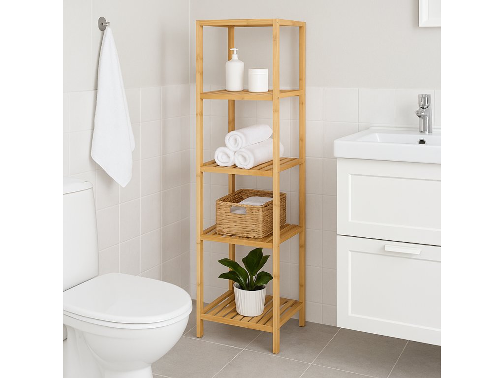 Praktický policový diel disponuje piatimi úložnými policami. Vyrobený z odolného bambusu, ktorý je pevný a ekologický. Otvorená konštrukcia umožňuje ľahký prístup k uloženým veciam. Ponúka všestranné využitie v kúpeľni, kuchyni, predsieni alebo spálni. Jednoduchý a prirodzený design, ktorý sa hodí do rôznych interiérov.