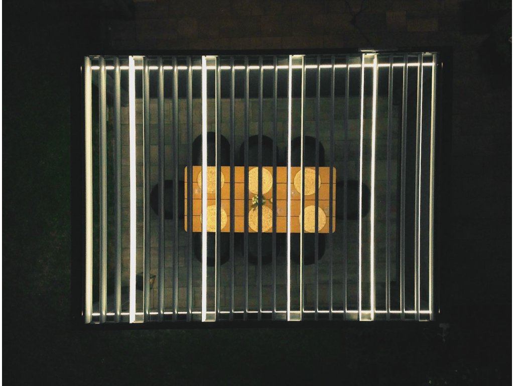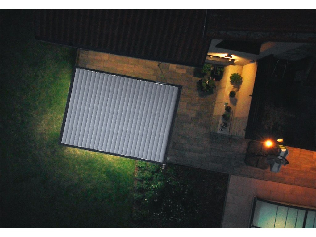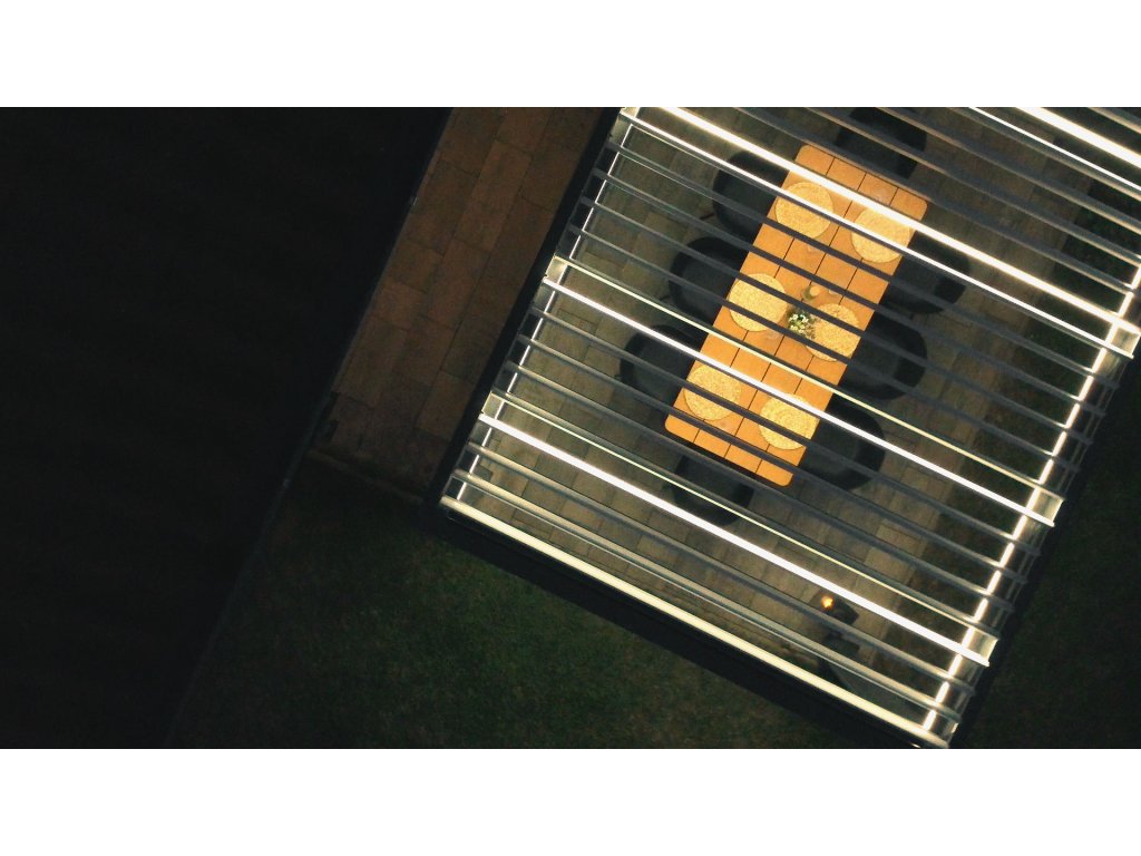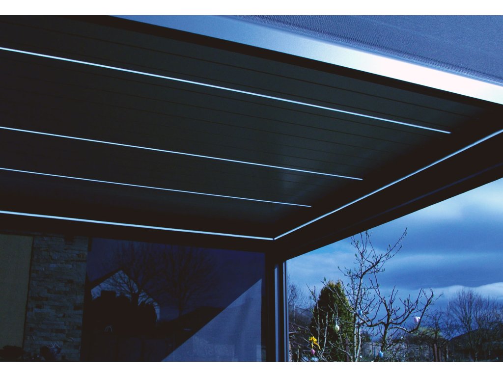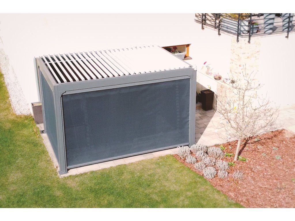 Pergola disponuje štyrmi screenovými roletami po stranách. Sťahovanie roliet rovnako ako ostatné funkcie pergoly je možné ovládať pomocou diaľkového ovládača, ktorý je súčasťou balenia. Naklápanie 25 lamiel na streche pergoly a stiahnutie screenových roliet zaistí zabudované elektromotory. Manipulácia je teda veľmi jednoduchá a nenáročná. Súčasťou je aj LED osvetlenie namontované v 4 lamelách, ktoré rozsvietite aj pohodlne na diaľku ovládačom. Použité materiály odolávajú poveternostným vplyvom.