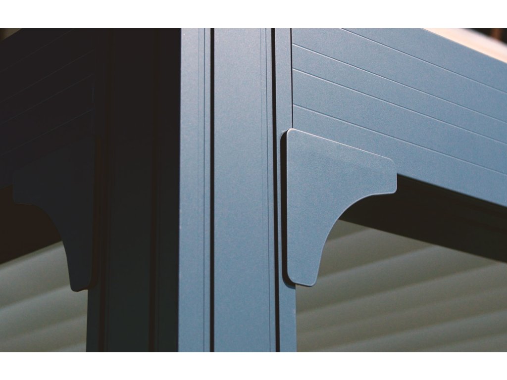 Jej hliníková konštrukcia zaistí patričnú stabilitu. Kovové časti ošetrené práškovým lakom lepšie odolávajú poveternostným vplyvom. V podnoží v tvare obdĺžnika sú vyvŕtané otvory na ukotvenie pergoly do zeme. Odtokové kanáliky v nohách pergoly odvádzajú dažďovú vodu zo striešky.