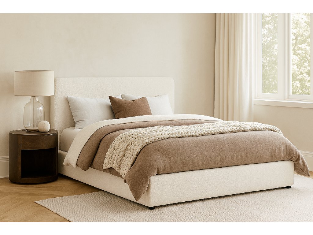 Posteľ Teddy kombinuje moderný design, maximálny komfort a praktické využitie priestoru. Vďaka výklopnému lamelovému roštu ponúka veľkorysý úložný priestor, ideálny pre posteľnú bielizeň, deky alebo sezónne veci. Mäkké čalúnené čelo s buklé poťahom vytvára útulnú atmosféru a poskytuje pohodlie pri čítaní či odpočinku. Elegantný poťah v neutrálnom odtieni sa ľahko kombinuje s akýmkoľvek štýlom interiéru – od moderného po škandinávsky.