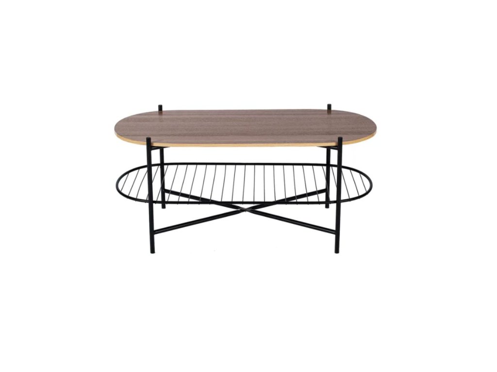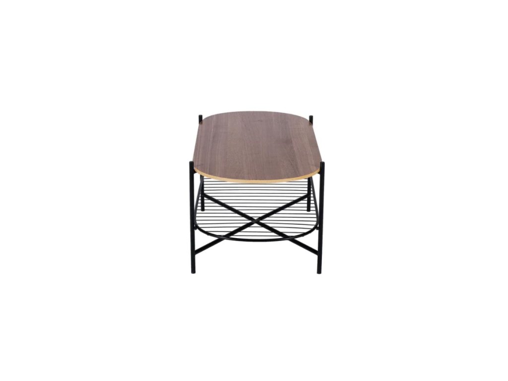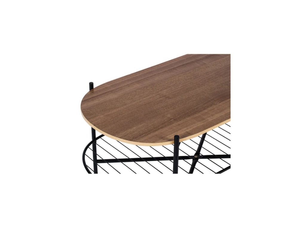 Oválny konferenčný stolík prináša spojenie 2 odlišných materiálov. Doska stola z MDF s ozdobným dyhovaním dokonale imituje masív, ale je cenovo dostupnejšia ako masívne drevo. Kovové nohy a spodné poschodie dodávajú celej konštrukcii pevnosť, odolnosť a stabilitu. Vďaka tomu vám vydržia dlhé roky. Stolík Joe obohatí svojím vzhľadom akýkoľvek interiér.