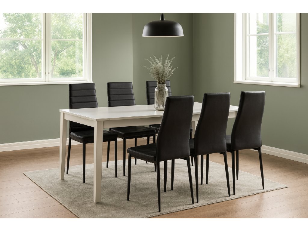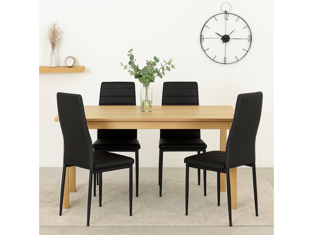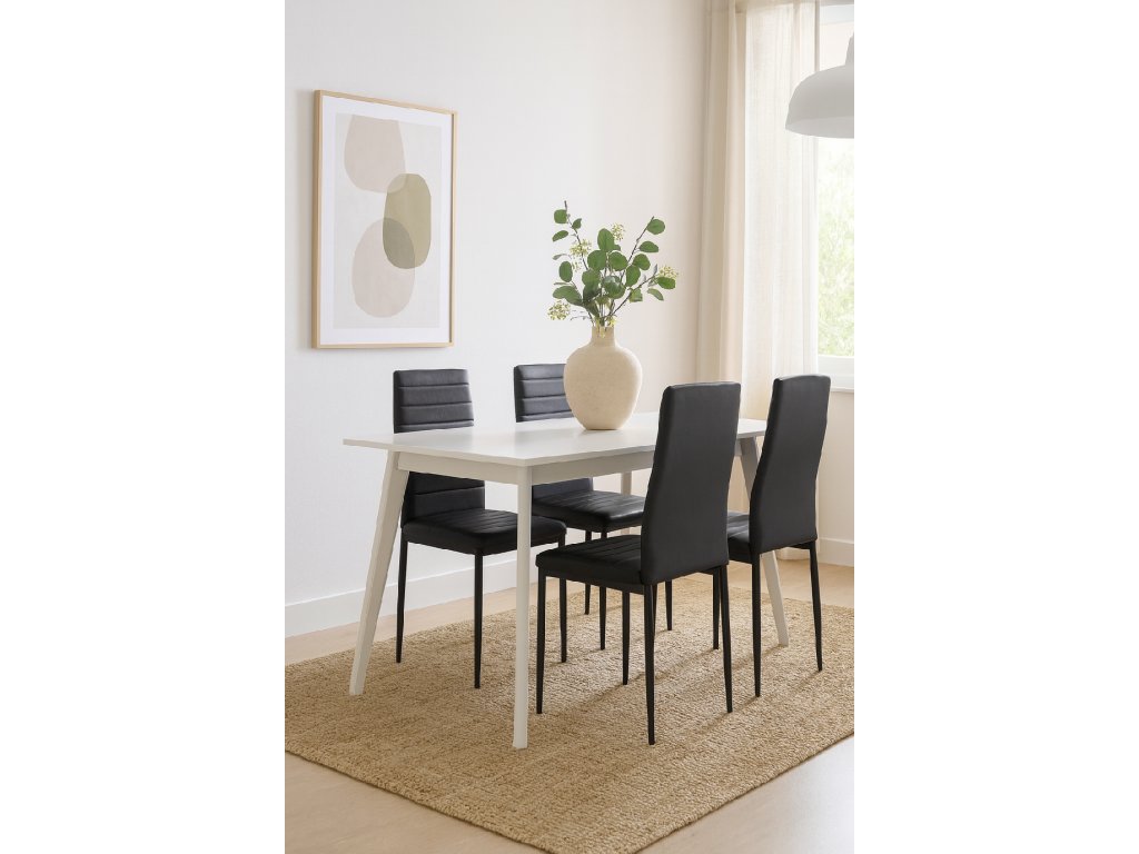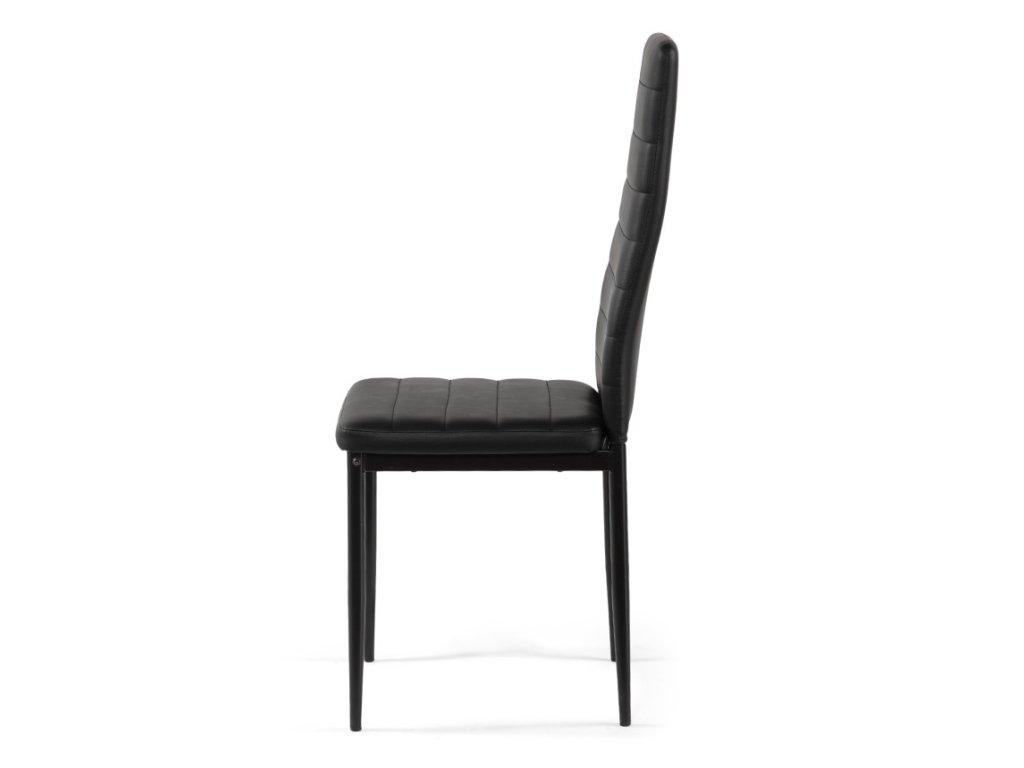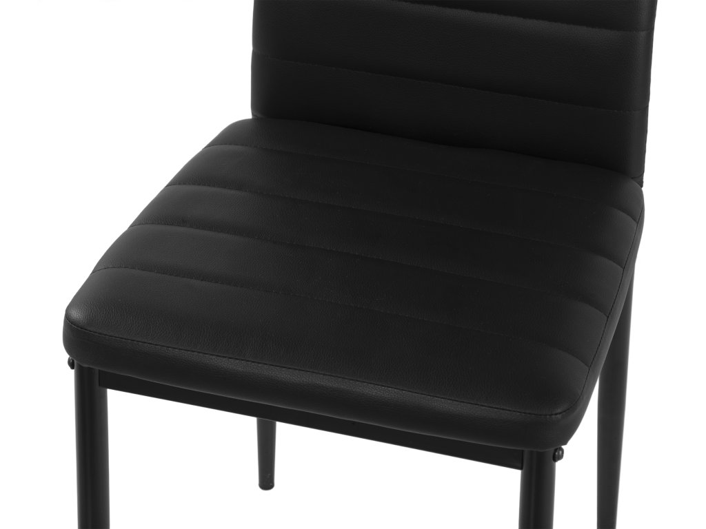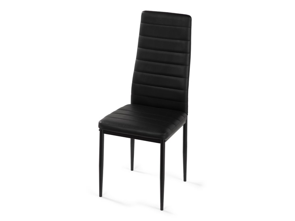 Moderná stolička TINO zaujme elegantným dizajnom. Vaše pohodlie zaručí komfortné čalúnenie z umelej kože v čiernej farbe a mäkké polstrovanie. Štíhle a pevné kovové nohy zaistia patričnú stabilitu. Ľahkú stoličku TINO ľahko prenesiete. Jej nosnosť je až 120 kg. Stoličku využijete ako jedálenskú stoličku k vášmu jedálenskému stolu alebo kdekoľvek inde v interiéri.
