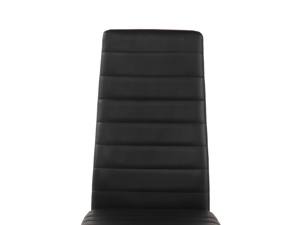 Jedálenská stolička s oceľovým podnožím v čiernej farbe s čiernym poťahom z umelej kože.