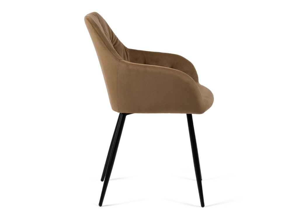 Jedálenský stôl dopĺňajú elegantné stoličky s podrúčkami, ktoré prinesú do interiéru moderný dizajn. O vaše pohodlie sa postará komfortné čalúnenie v béžovom zamate s dekoratívnym prešívaním. Pevné kovové nohy v čiernom prevedení dodajú stoličke patričnú stabilitu.