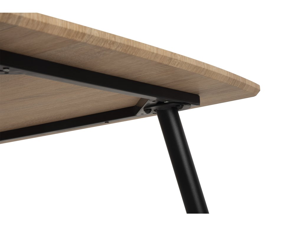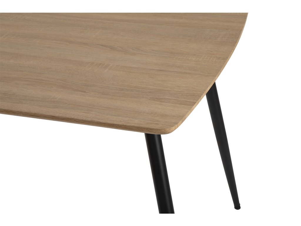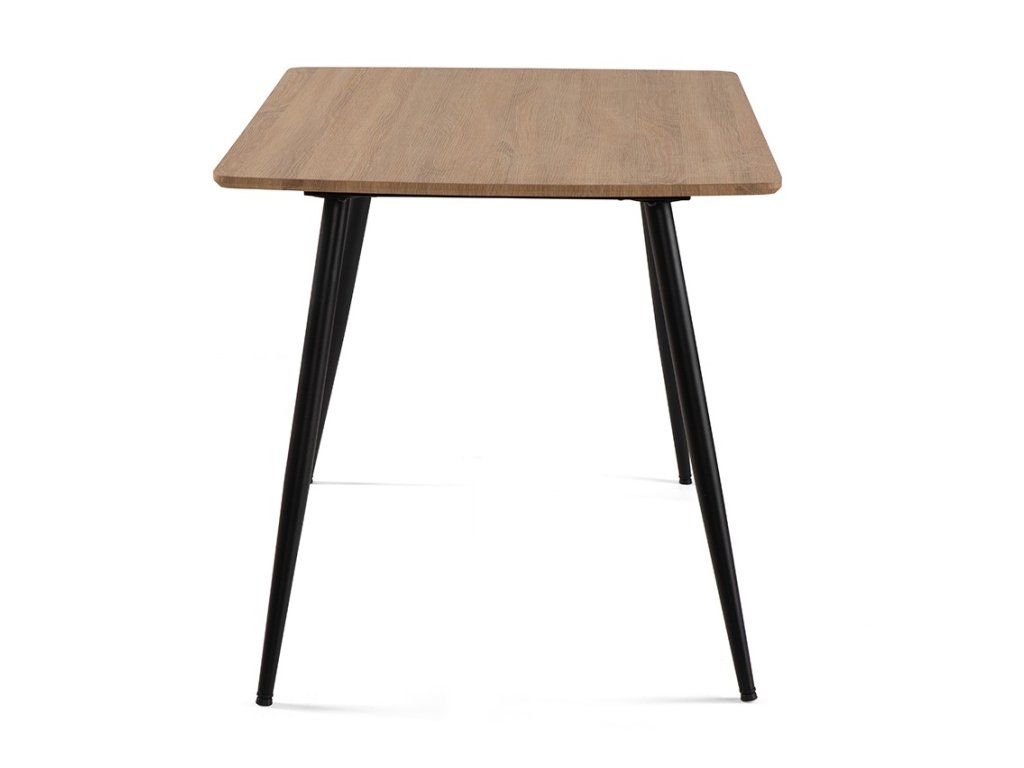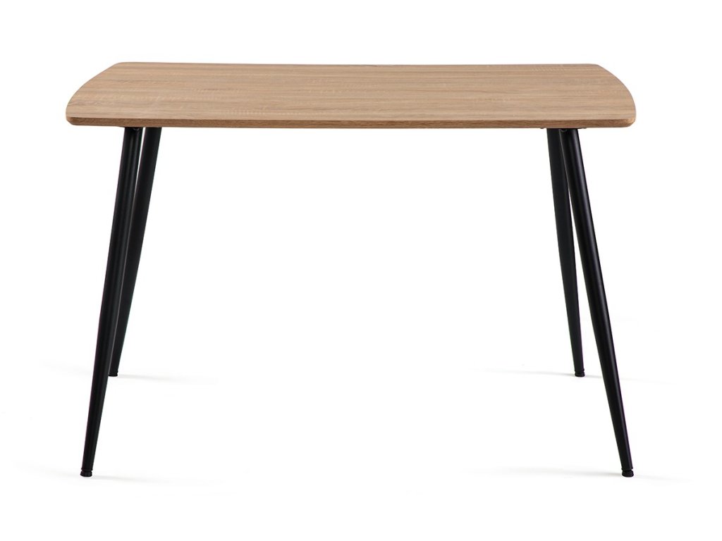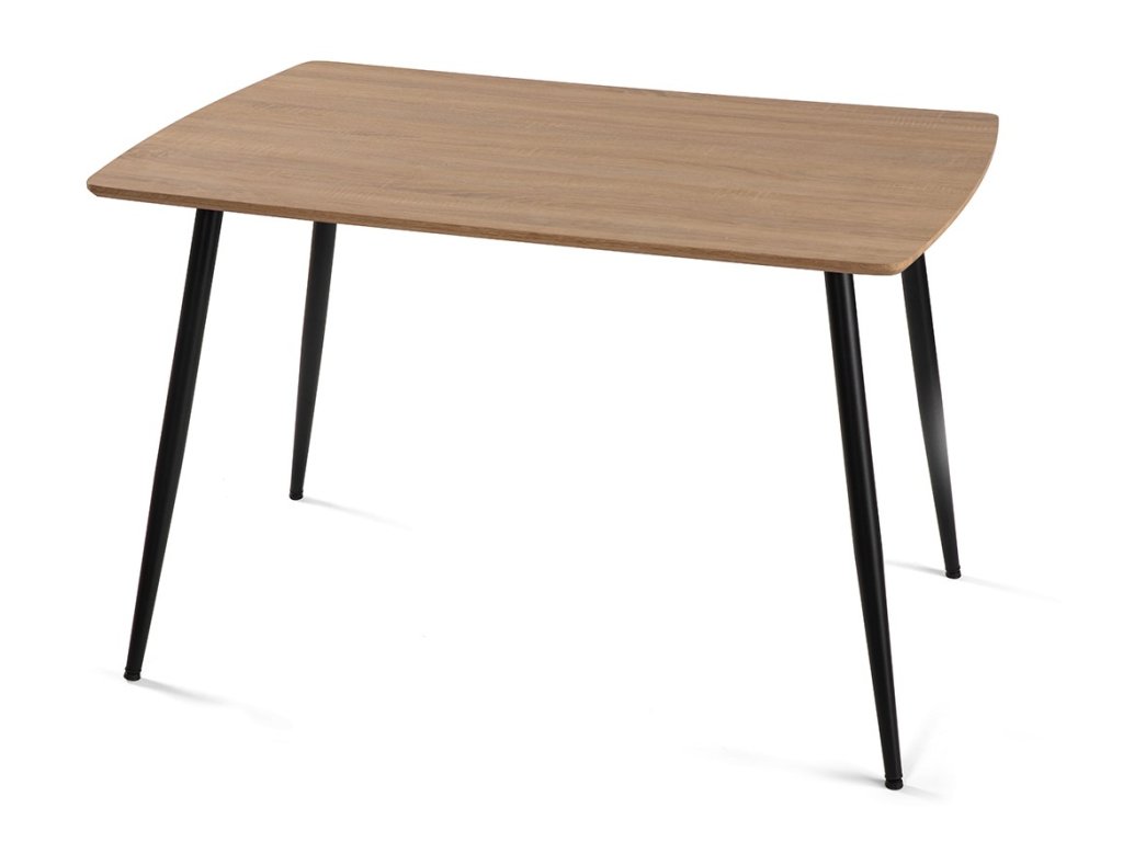 Obdĺžnikový jedálenský stôl s rozmermi 120 x 80 cm prináša elegantný minimalistický dizajn. Doska stola z MDF je vyvedená v dekore prírodného dreva, ktorý prinesie do interiéru teplý a nadčasový vzhľad. Elegantný vzhľad stola umocňujú stabilné kovové nohy v čiernom prevedení. Použité materiály nevyžadujú zvláštnu údržbu. Stôl stačí utrieť vlhkou handričkou. Stôl je vhodný do jedálne, kuchyne či menších interiérov.