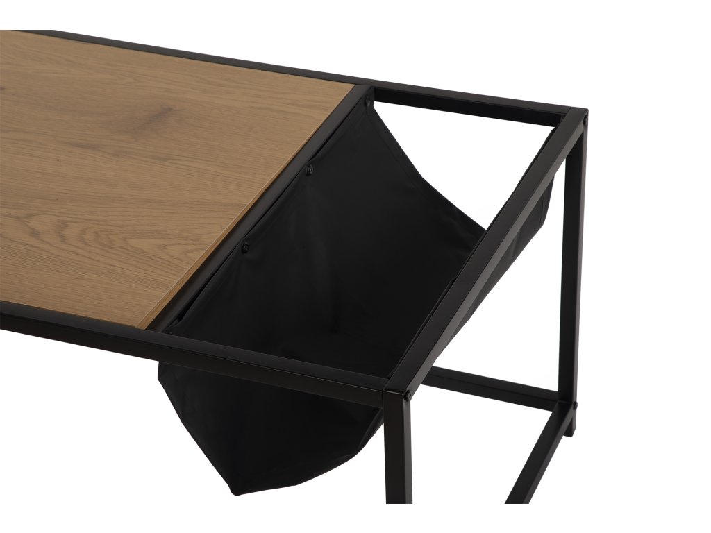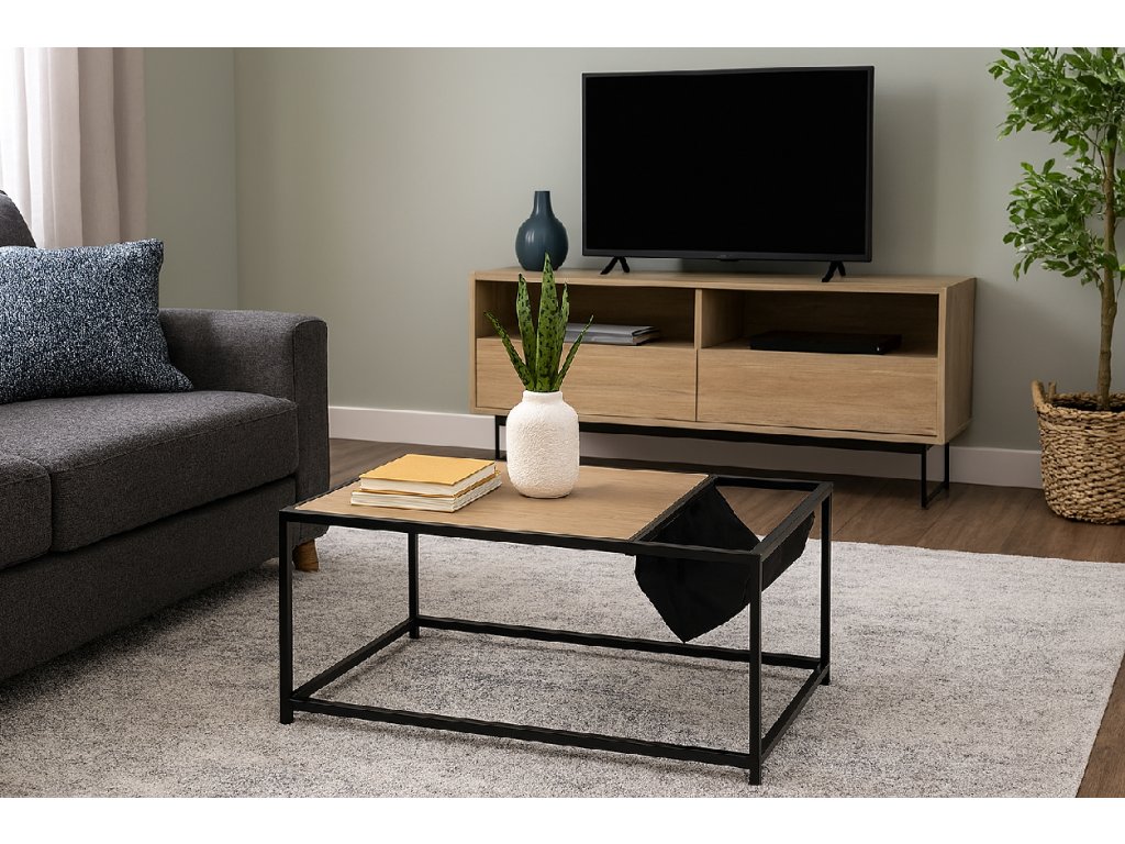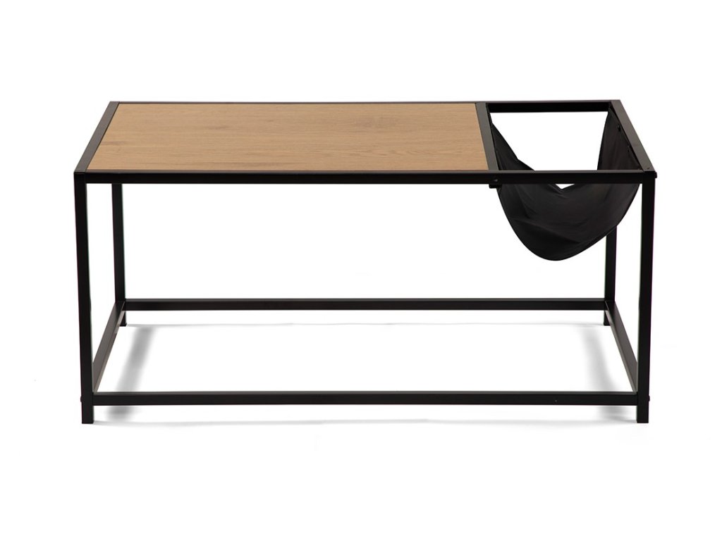 Moderný konferenčný stolík je vyrobený v praktickom designe. Stolová doska v dekore prírodného dreva prinesie do interiéru elegantný vzhľad. Pevná kovová konštrukcia v čiernom prevedení dodá stolíku patričnú stabilitu. Integrovaný textilný úložný priestor bude ideálny na odloženie časopisov či drobností.