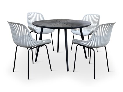Krásna záhradná zostava s konštrukciou z ocele pre 4 osoby. Zostavu tvorí moderný kovový stôl a 4 dizajnové stoličky RIKKE v čiernej farbe. Použité ľahké a takmer bezúdržbové...
