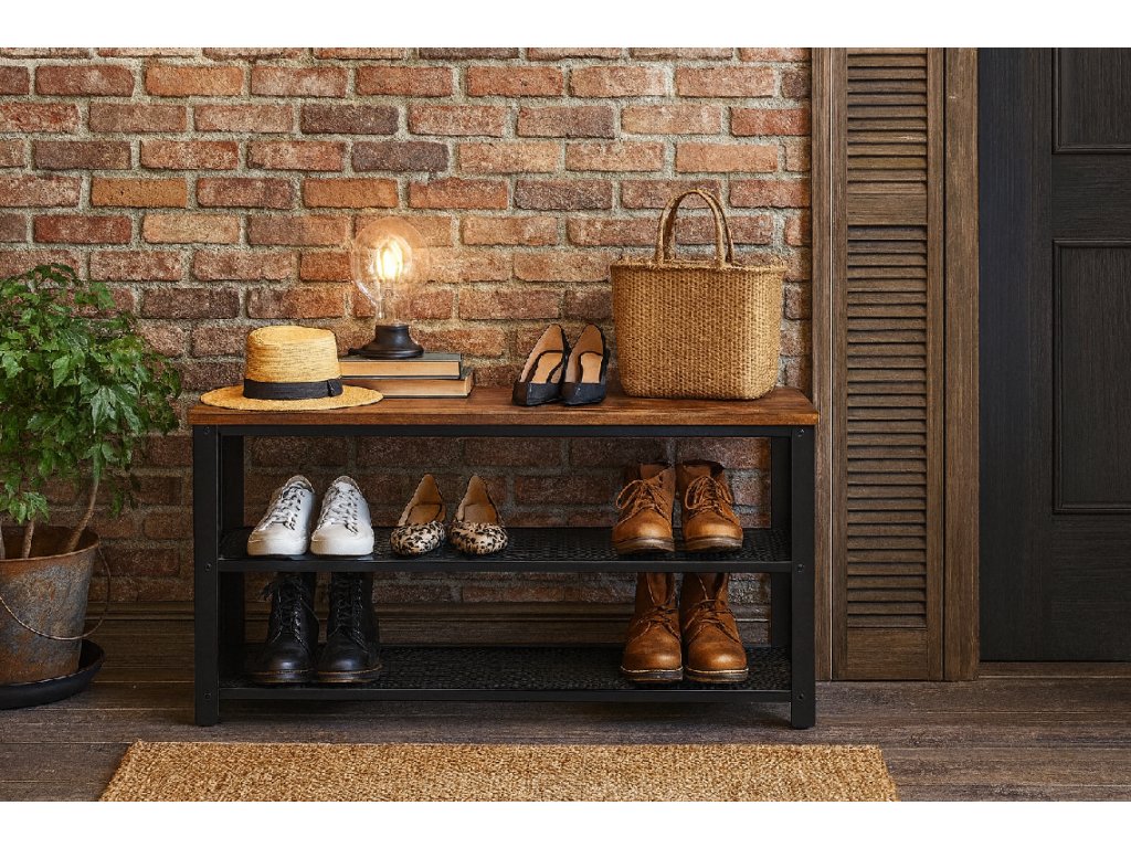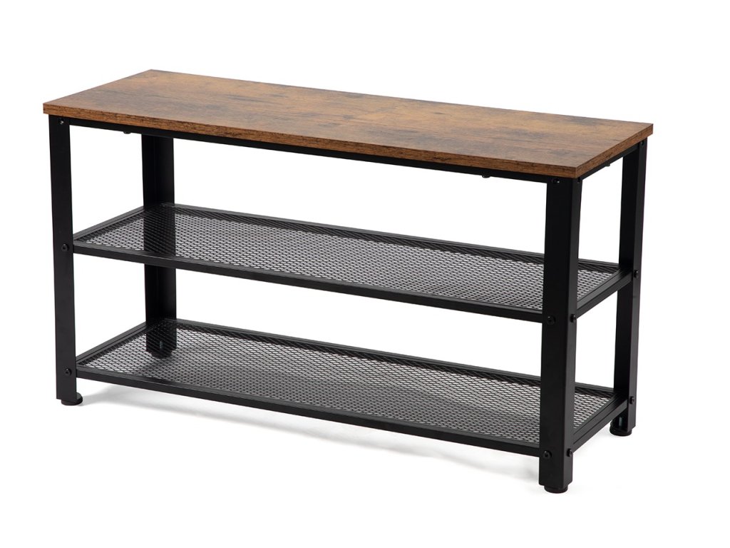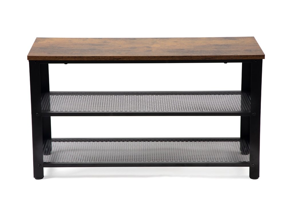 Botník disponuje robustnou kovovou konštrukciou a odolnou odkladacou doskou z MDF. Na dve priestranné mriežkové police uložíte obuv a rôzne doplnky. Vrchnú časť je možné využiť ako odkladaciu plochu alebo lavicu na sedenie. Botník so stabilným a vzdušným designom bude ideálny do predsiene či na chodbu.