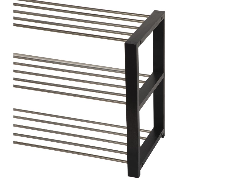 Konštrukcia z pevných kovových trubiek zaisťuje stabilitu a dlhú životnosť. Bočné rámy poskytujú pevnú oporu a zároveň elegantný vzhľad. Otvorený dizajn umožňuje dobré vetranie obuvi a ľahký prístup. Vhodný do predsiene, chodby alebo šatne na každodenné použitie.