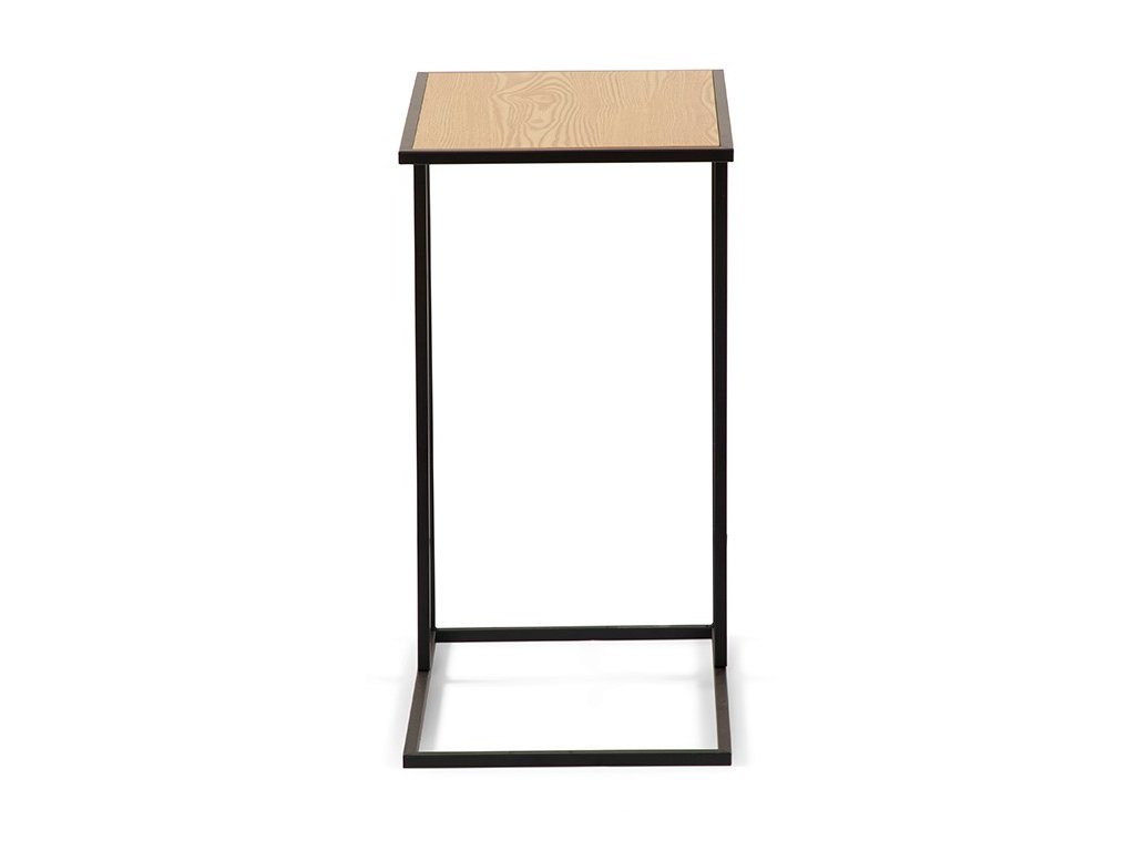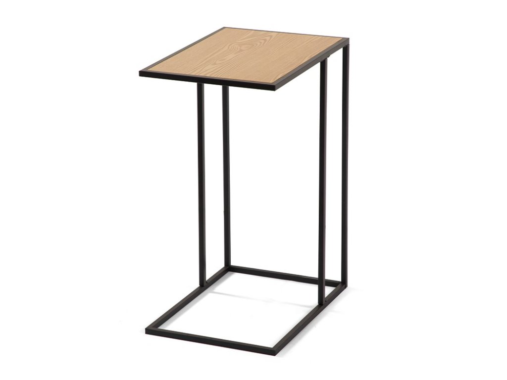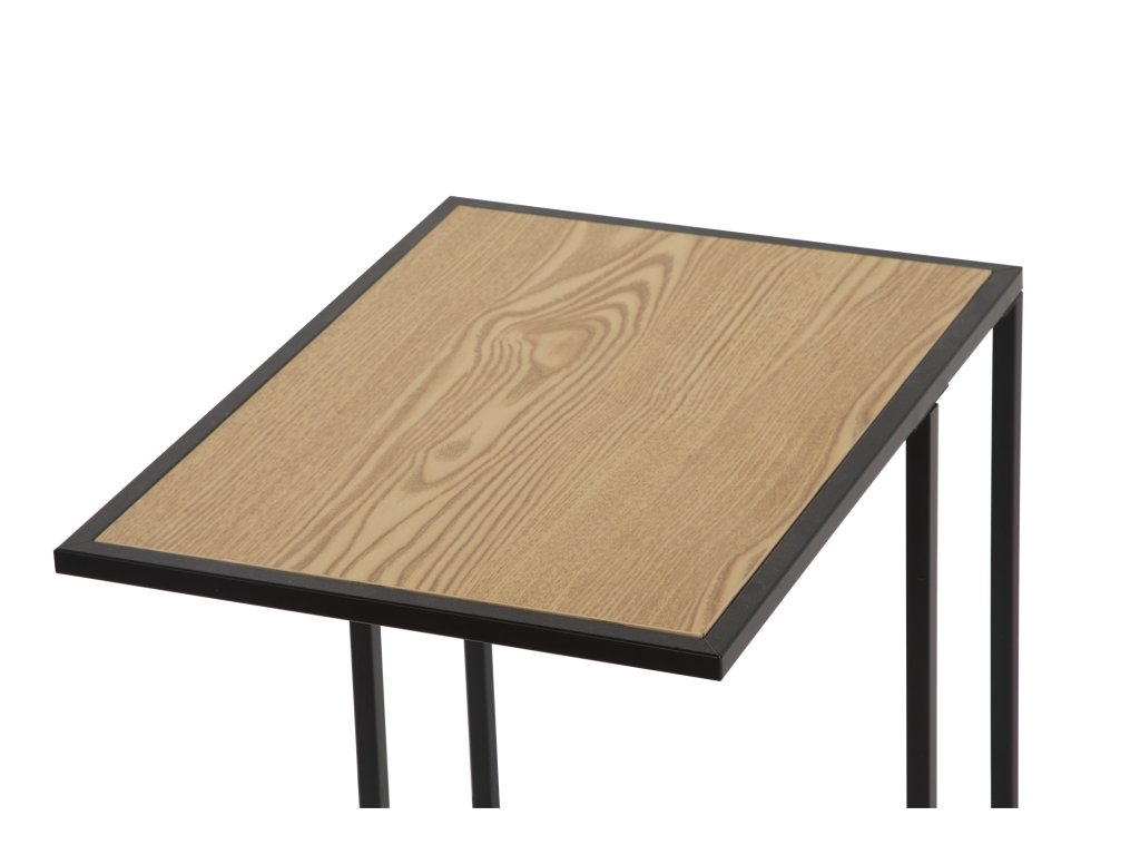 Odkladací stolík, MDF doska v prírodnej farbe, oceľové podnožie v čiernej farbe, 40x30x58 cm.
