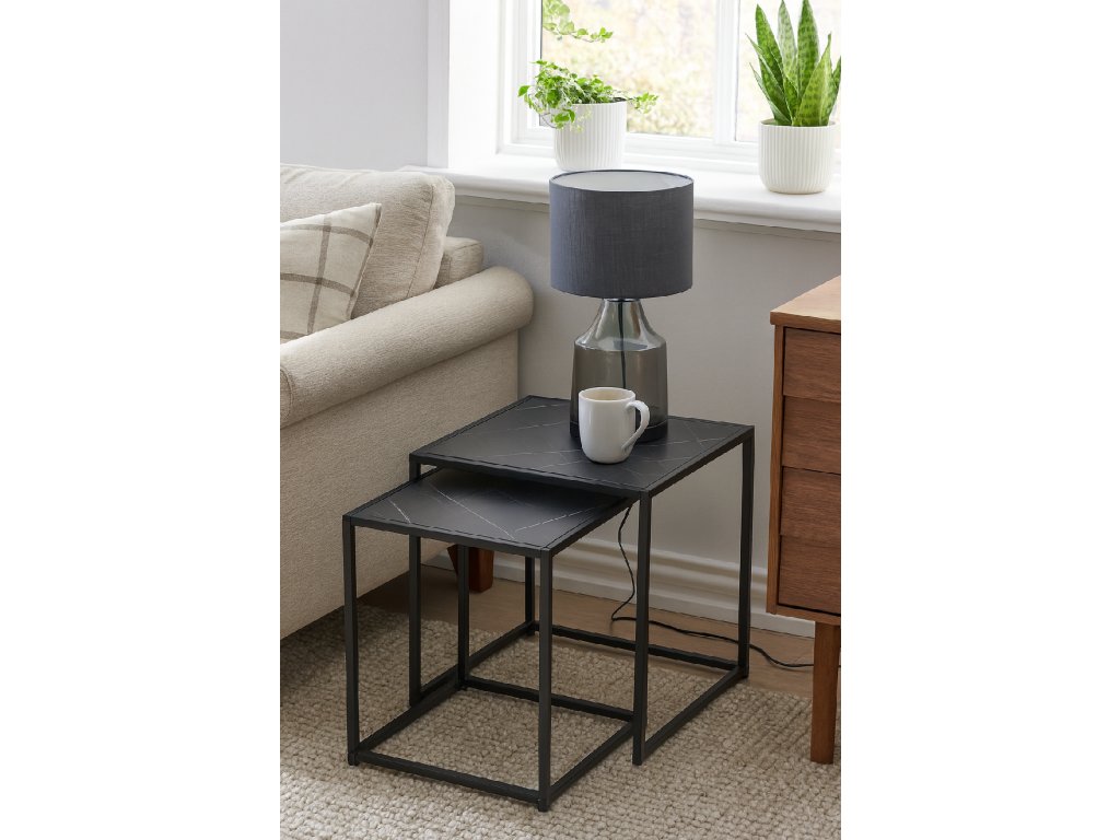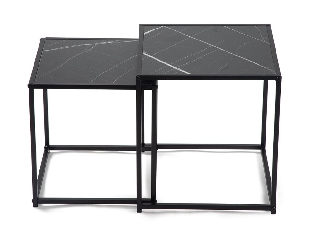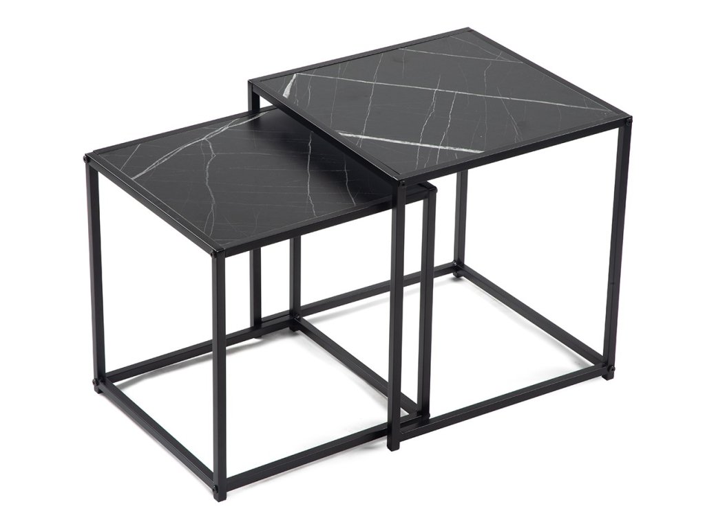 Sada odkladacích stolíkov v dekore čierneho mramoru DUETTA 38,35