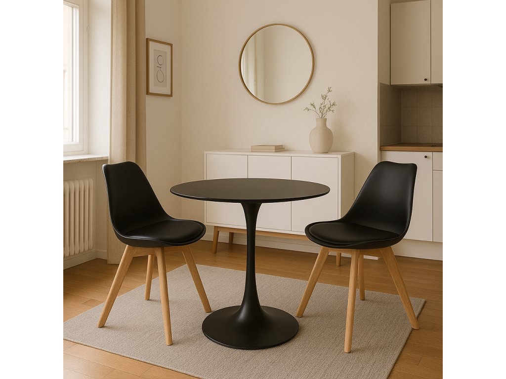 Štýlová stolička zaujme moderným škandinávskym dizajnom. Vaše pohodlie zaručí komfortné čierne plastové sedátko s pohodlným polstrovaním. Masívne drevené nohy z bukového dreva zaisťujú pevnosť, stabilitu a dodajú stoličke prírodný vzhľad. Ľahkú stoličku SCANDINO ľahko prenesiete. Jej nosnosť je až 120 kg. Stoličku využijete ako jedálenskú stoličku k vášmu jedálenskému stolu alebo kdekoľvek inde v interiéri. Skvele sa hodí do jedálne, kuchyne aj pracovne.