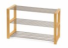 Botník s oceľovou konštrukciou v dekore dreva a oceľovými tyčami v striebornej farbe. Rozmery: 30 x 80 x 50 cm (h x š x v).