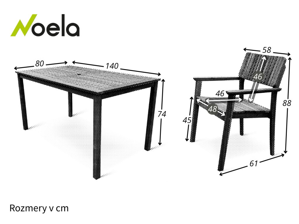 Rozmery stola: 80 cm x 140 cm x 74 cm (Hĺbka x Šírka x Výška)