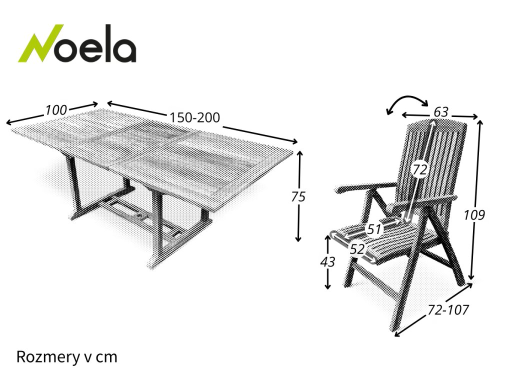 Záhradný stôl dopĺňa 6 polohovacích drevených stoličiek z vysoko odolného materiálu teak. Stolička je anatomicky tvarovaná. Široké podrúčky pre pohodlné sedenie a rýchla možnosť zloženia pre potrebu uloženia. Vysokú chrbtovú opierku záhradnej stoličky America si môžete podľa potreby nastaviť až do 7 polôh. Nosnosť je až 130 kg.