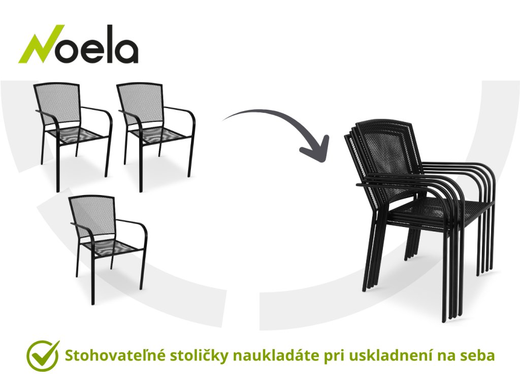 K jedálenskému stolu dodávame celokovovú záhradnú stoličku Lana. Konštrukciu stoličky z oceľových rúrok dopĺňa kovový výplet sedadla a opierky. Kovové časti nábytku boli pri výrobe ošetrené práškovým lakom proti hrdzi. Stoličky Lana steel je možné stohovať. Ušetríte tak miesto pri ich uskladnení, kedy stoličky jednoducho naukladáte na seba. Nosnosť je až 100 kg.