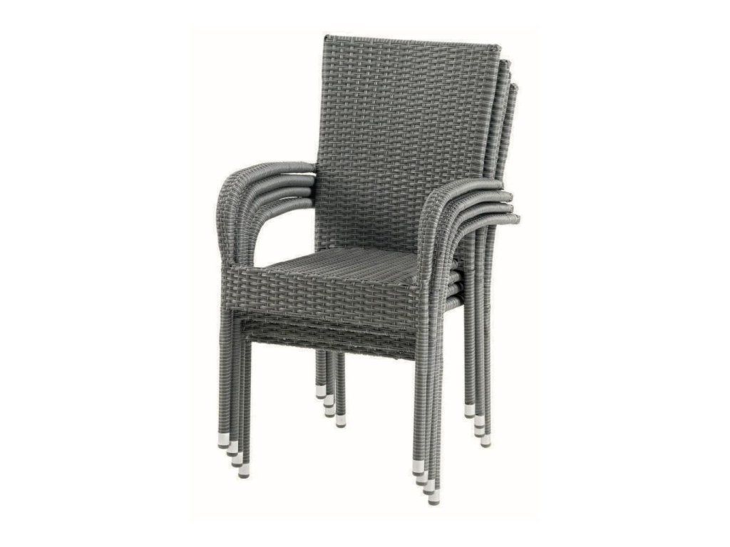 Stolička je vyrobená z odolného umelého ratanu, ktorý má len minimálne nároky na údržbu a dobre odoláva poveternostným vplyvom. Je skvelou voľbou do slovenských poveternostných podmienok.