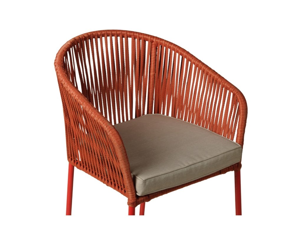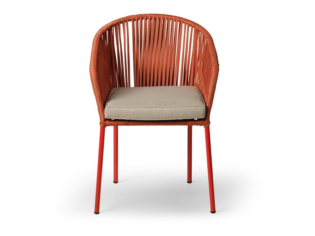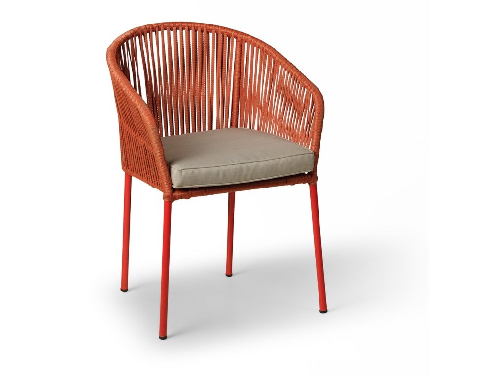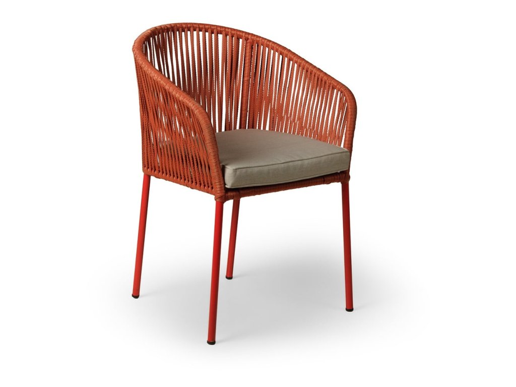 Súprava 2 komfortných záhradných stoličiek s pevnou kovovou konštrukciou a látkovým vypletom v červenej farbe. Kovové časti boli ošetrené proti hrdzi. Stoličky sú dodávané vrátane odnímateľného podsedáku. Ich nosnosť je až 110 kg.