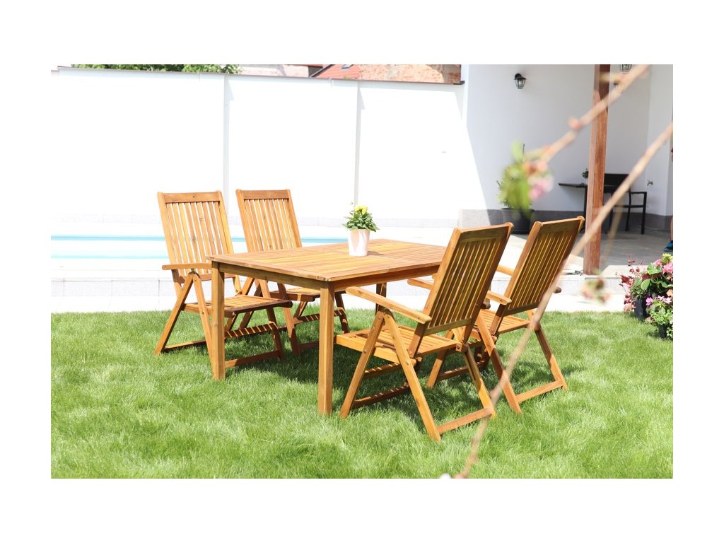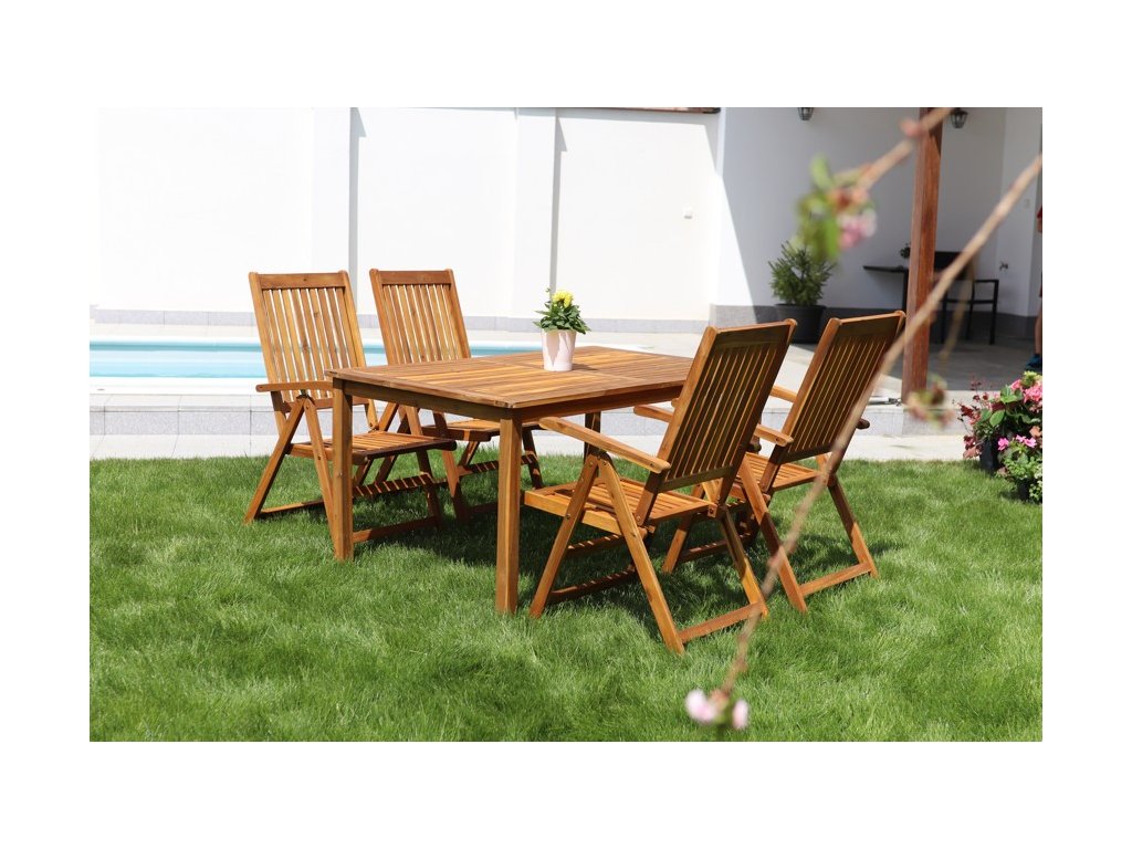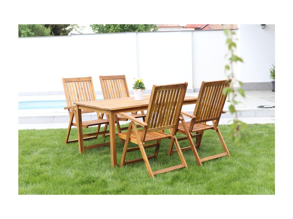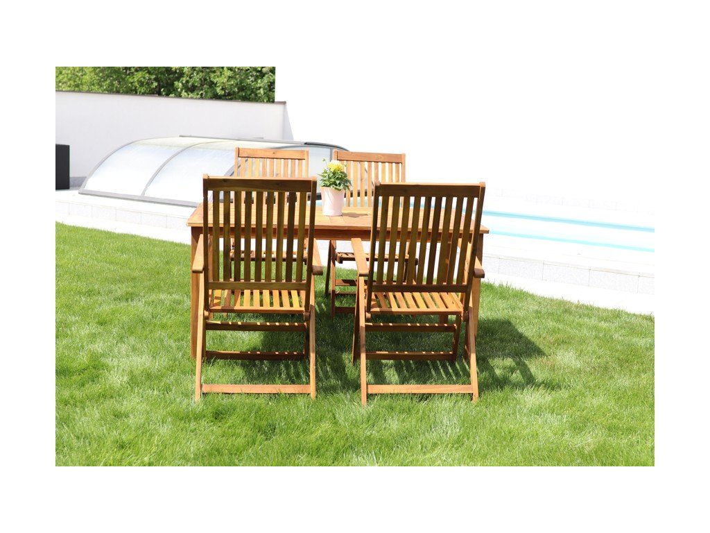 Záhradný drevený stôl LUCY + 4x drevená polohovacia stolička Viet