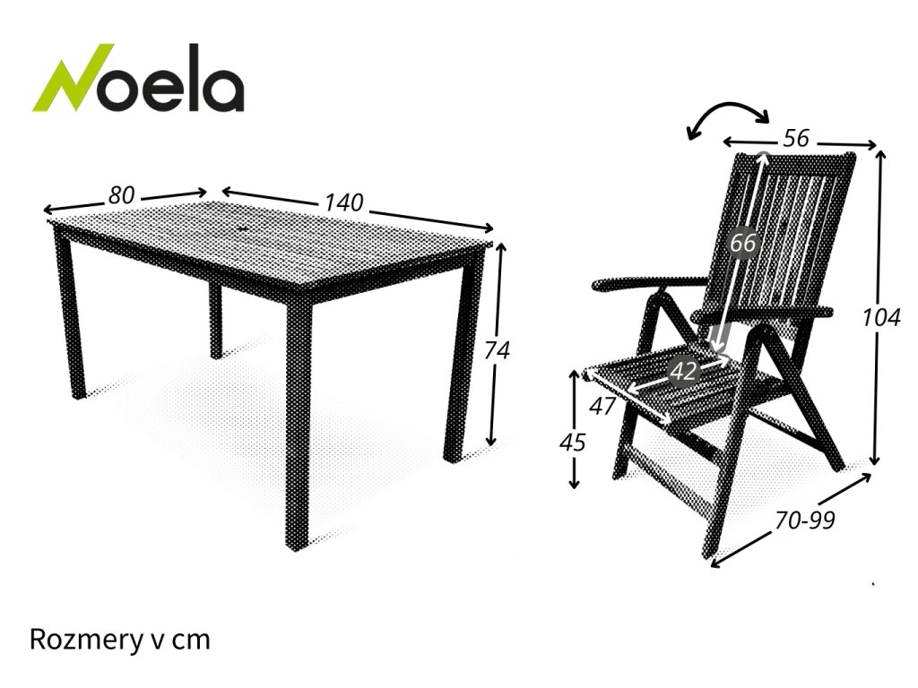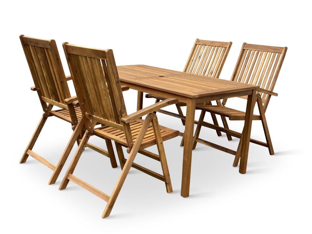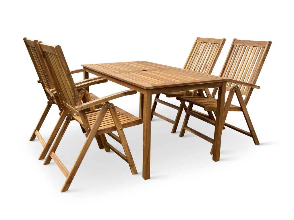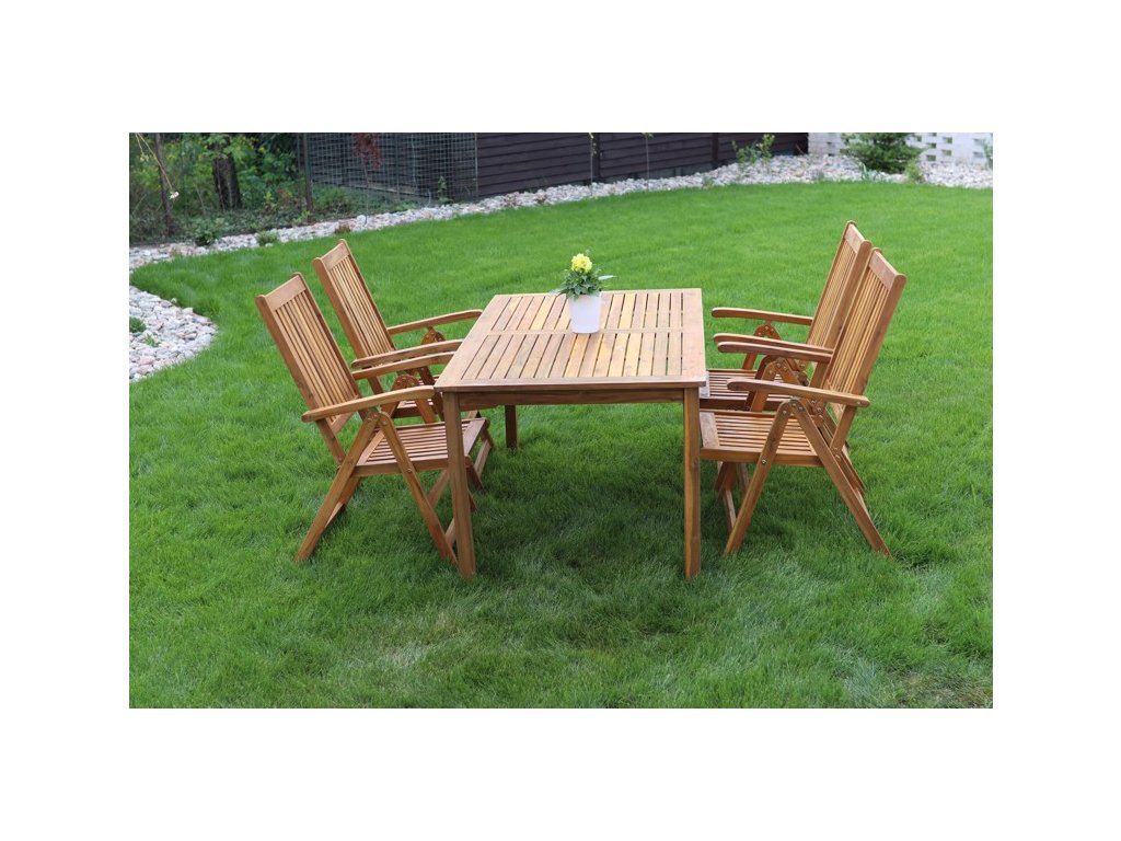 Záhradný drevený stôl LUCY + 4x drevená polohovacia stolička Viet