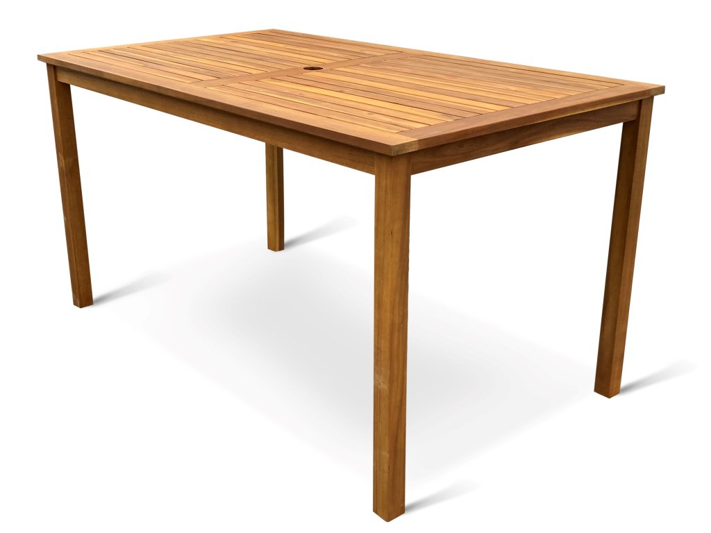Záhradný stôl Lucy ponúkne kvalitné spracovanie a klasický jednoduchý dizajn stola s obdĺžnikovou doskou s rozmermi 140 x 80 cm. Vhodný pre 4-6 osôb. Drevená doska stola vo výške 74 cm s otvorom pre slnečník uprostred.