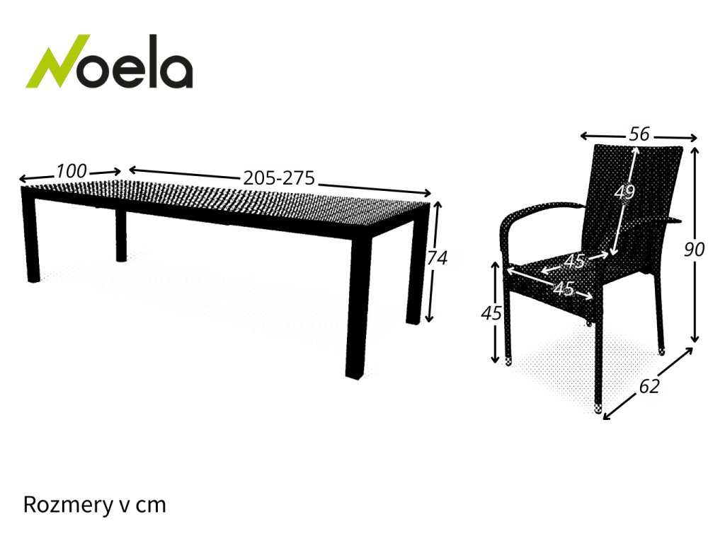Jedálenský stôl dopĺňa pohodlná záhradná stolička s oceľovou konštrukciou. Stolička je stohovateľná, takmer bezúdržbová a má vystužený sedák, ktorý unesie ťažšie váhy aj po dlhšiu dobu. Nosnosť je až 130 kg! Stolička je vyrobená z odolného umelého ratanu, ktorý má len minimálne nároky na údržbu a dobre odoláva poveternostným vplyvom. Je skvelou voľbou do slovenských poveternostných podmienok.