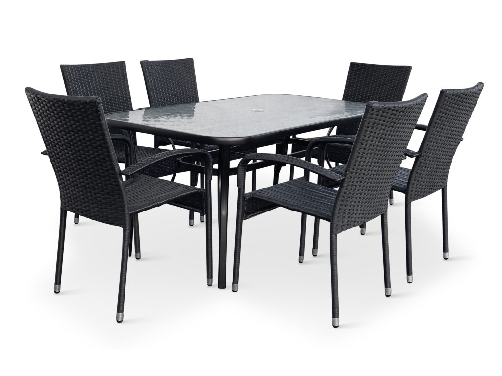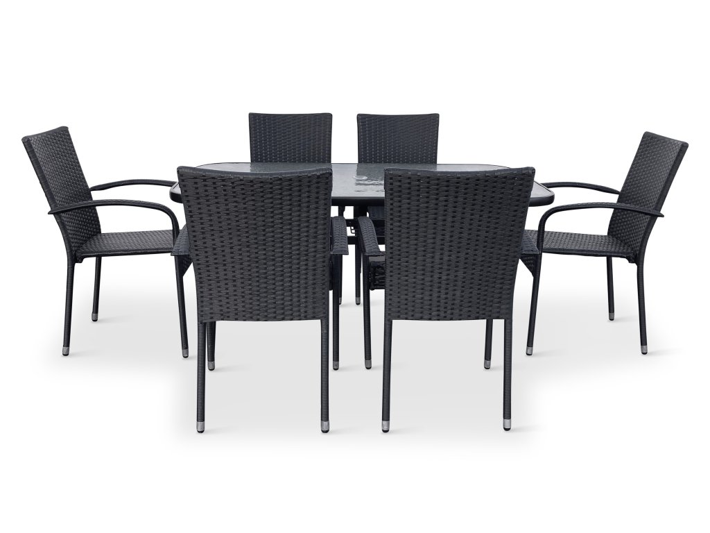 Zostavu tvorí Záhradný kovový stôl Klaudia - transparentná doska a 6 Záhradných ratanových stoličiek Paris KD.