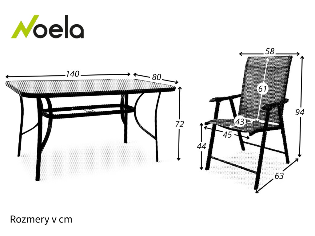 Zostava zahŕňa stabilný stôl s kovovou konštrukciou z ocele a sklenenou doskou s rozmermi 140 x 80 cm. Doska stola vyrobená z priehľadného tvrdeného skla disponuje otvorom pre slnečník s priemerom 4,5 cm. Stôl dodávame vrátane plastovej záslepky pre prípad, kedy otvor pre slnečník nebudete využívať. Kovové časti stola boli ošetrené proti hrdzi. Praktický stôl z takmer bezúdržbových umývateľných materiálov, ktorý svojím jednoduchým univerzálnym dizajnom zapadne do všetkých vonkajších priestorov.