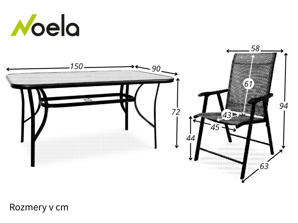 Zostava zahŕňa stabilný stôl s kovovou konštrukciou z ocele a sklenenou doskou s rozmermi 150 x 90 cm. Doska stola vyrobená z priehľadného tvrdeného skla disponuje otvorom pre slnečník s priemerom 4,5 cm. Stôl dodávame vrátane plastovej záslepky pre prípad, kedy otvor pre slnečník nebudete využívať. Kovové časti stola boli ošetrené proti hrdzi. Praktický stôl z takmer bezúdržbových umývateľných materiálov, ktorý svojím jednoduchým univerzálnym dizajnom zapadne do všetkých vonkajších priestorov.