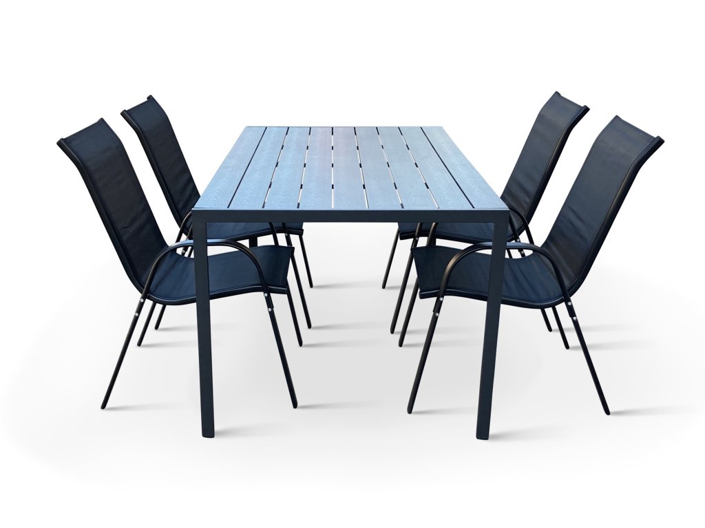 Stôl Viking L je ideálnym jedálenským stolom vhodným ako do záhrady, tak na terasu. Moderný, atraktívny design, ktorý ešte dlho nevyjde z módy a len tak vás neomrzí. Konštrukcia stola vyrobená z hliníka a adaptéry na nohách zaručujú dostatočnú stabilitu a nosnosť. Doska stola v čiernej farbe je vyrobená z umelého dreva artwood. Umelé drevo oproti tomu prírodnému poskytuje celý rad výhod. Artwood skvele odoláva poveternostným vplyvom a oproti drevu prírodnému vyžaduje iba minimálnu údržbu. Nevyšisuje farbu, neprepustí vodu a nenapadnú ho drevokazní parazity.