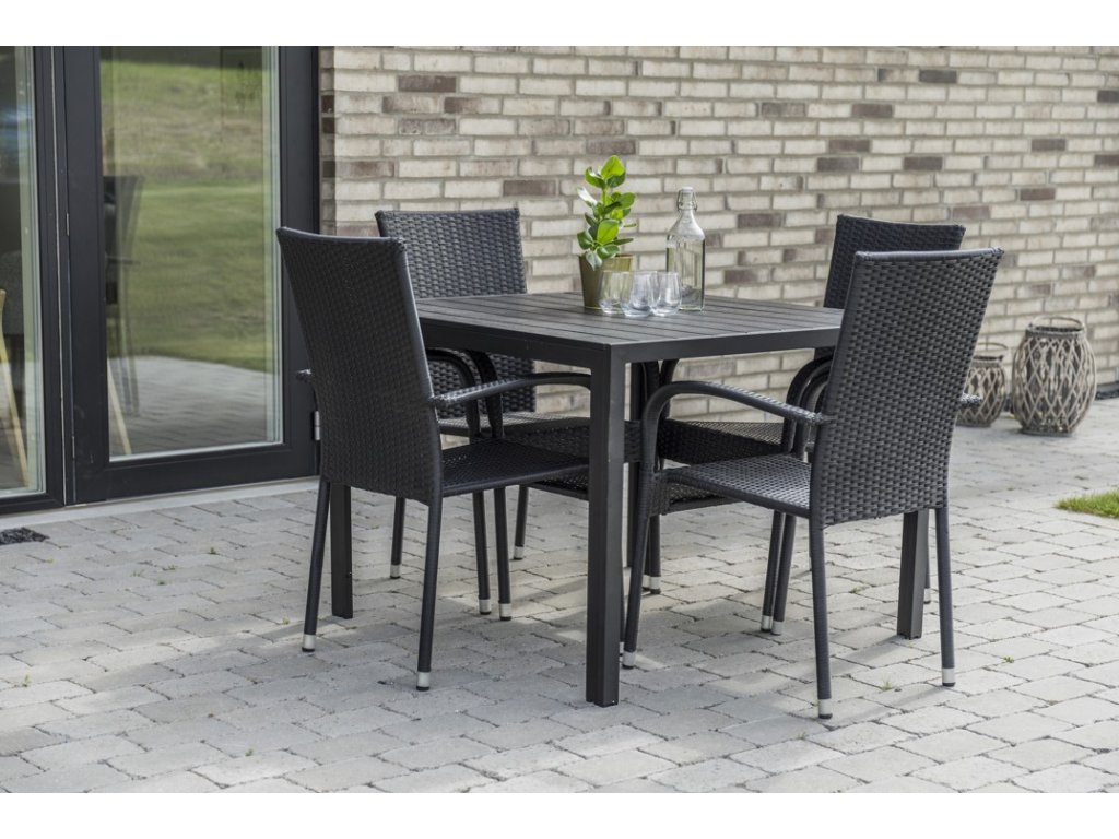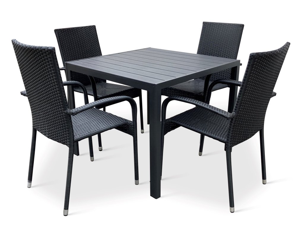 Zostavu tvorí Bezúdržbový kovový stôl Viking M a 4 Záhradné ratanové stoličky Paris KD.