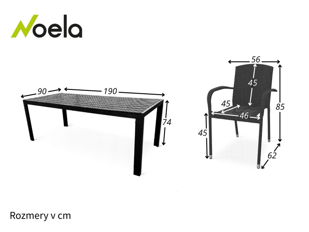 Rozmery stola: 90 cm x 190 cm x 74 cm (Hĺbka x Šírka x Výška)