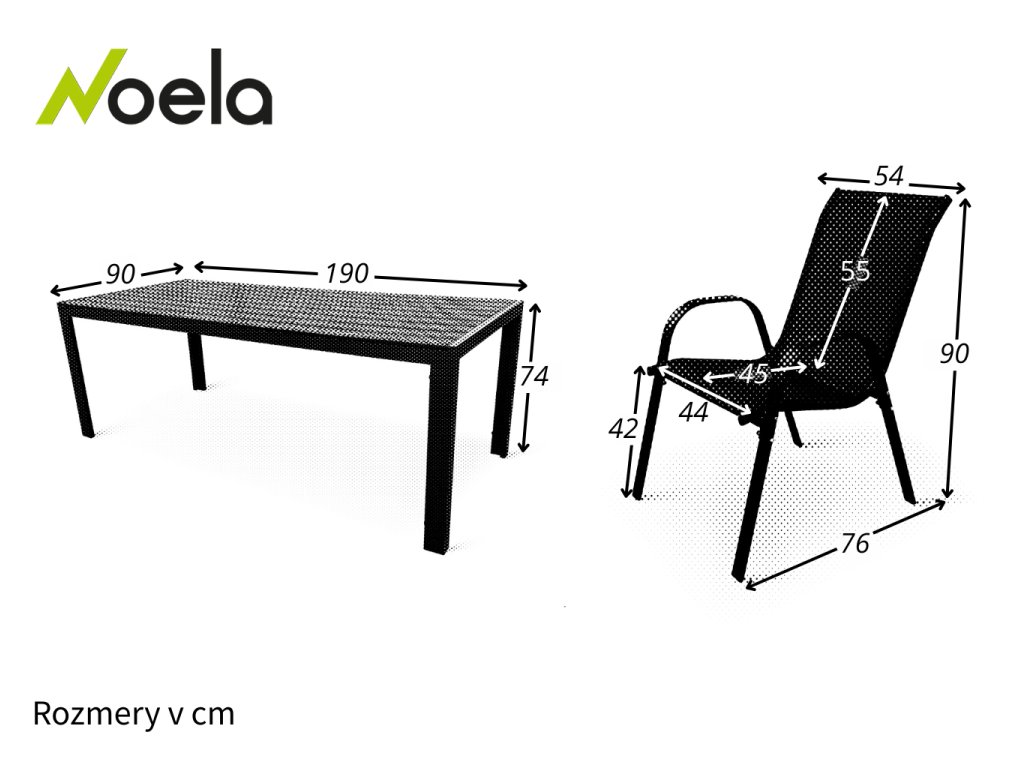 Rozmery stola: 90 cm x 190 cm x 74 cm (Hĺbka x Šírka x Výška)