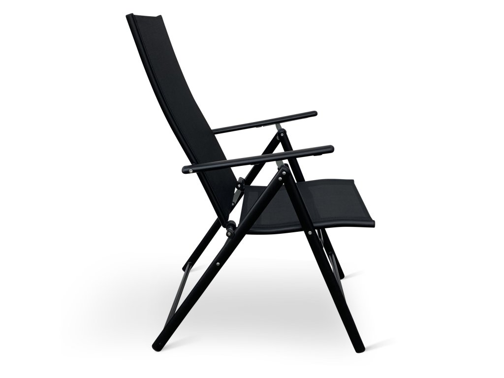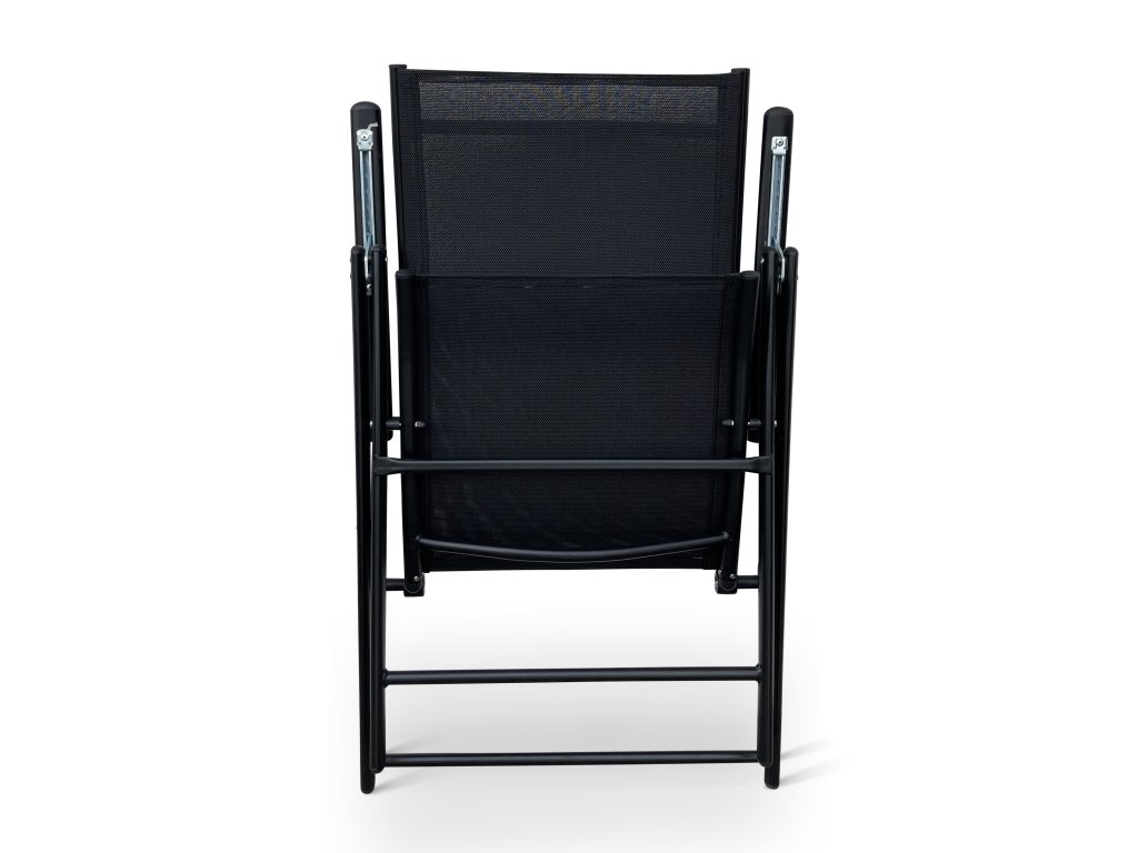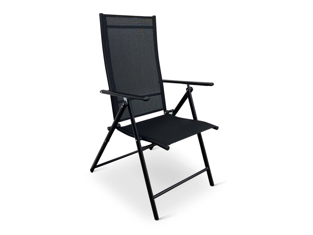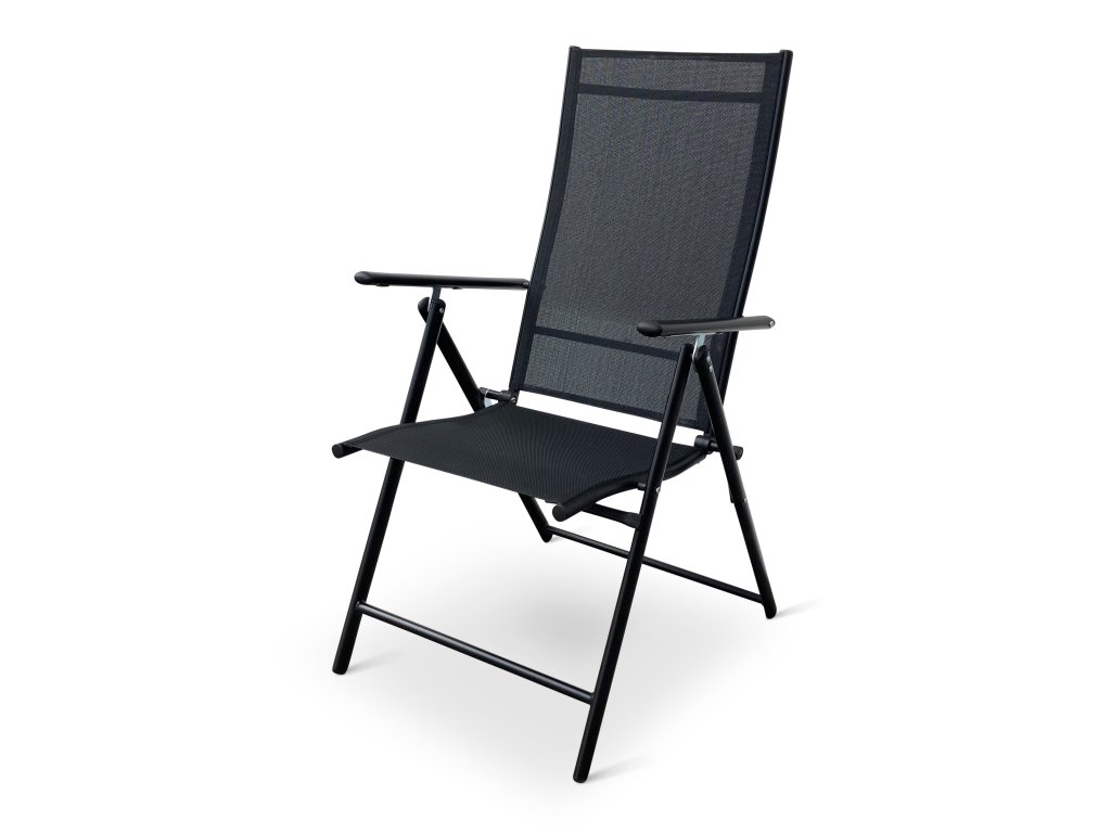 Jedálenský stôl dopĺňa moderná skladacia a polohovacia záhradná stolička s oceľovou konštrukciou, ktorá je ošetrená práškovým lakom proti hrdzi. Sedák a opierka chrbta sú vyrobené zo vzdušnej textílie. Pri leňošení oceníte vysoké operadlo na chrbát a pohodlné podrúčky. Stoličku Pia môžete polohovať. Rýchlo tak nájdete správnu a pohodlnú pozíciu. Stoličku je možné v prípade potreby zložiť. Po sezóne ju tak ľahko uložíte.