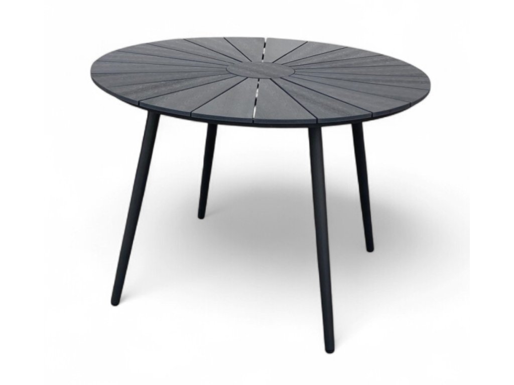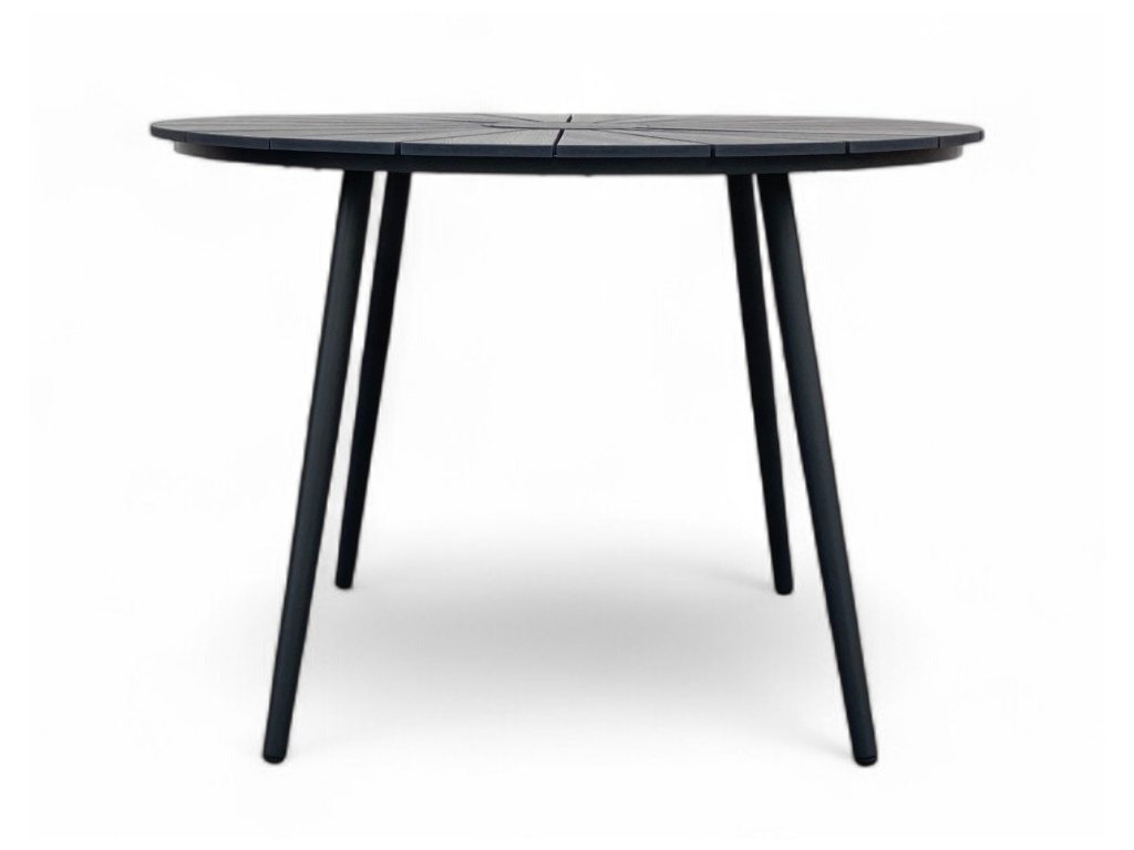 Stôl WILDER je ideálnym jedálenským stolom vhodným ako do záhrady, tak na terasu. Moderný, atraktívny design, ktorý ešte dlho nevyjde z módy a len tak vás neomrzí. Konštrukcia stola vyrobená z ocele a adaptéry na nohách zaručujú dostatočnú stabilitu a nosnosť. Okrúhla doska stola v čiernej farbe je vyrobená z umelého dreva artwood. Umelé drevo oproti tomu prírodnému poskytuje celý rad výhod. Artwood skvele odoláva poveternostným vplyvom. Nevyšisuje farbu, neprepustí vodu a nenapadnú ho drevokazní parazity. Kovové časti stola boli povrchovo ošetrené proti hrdzi.
