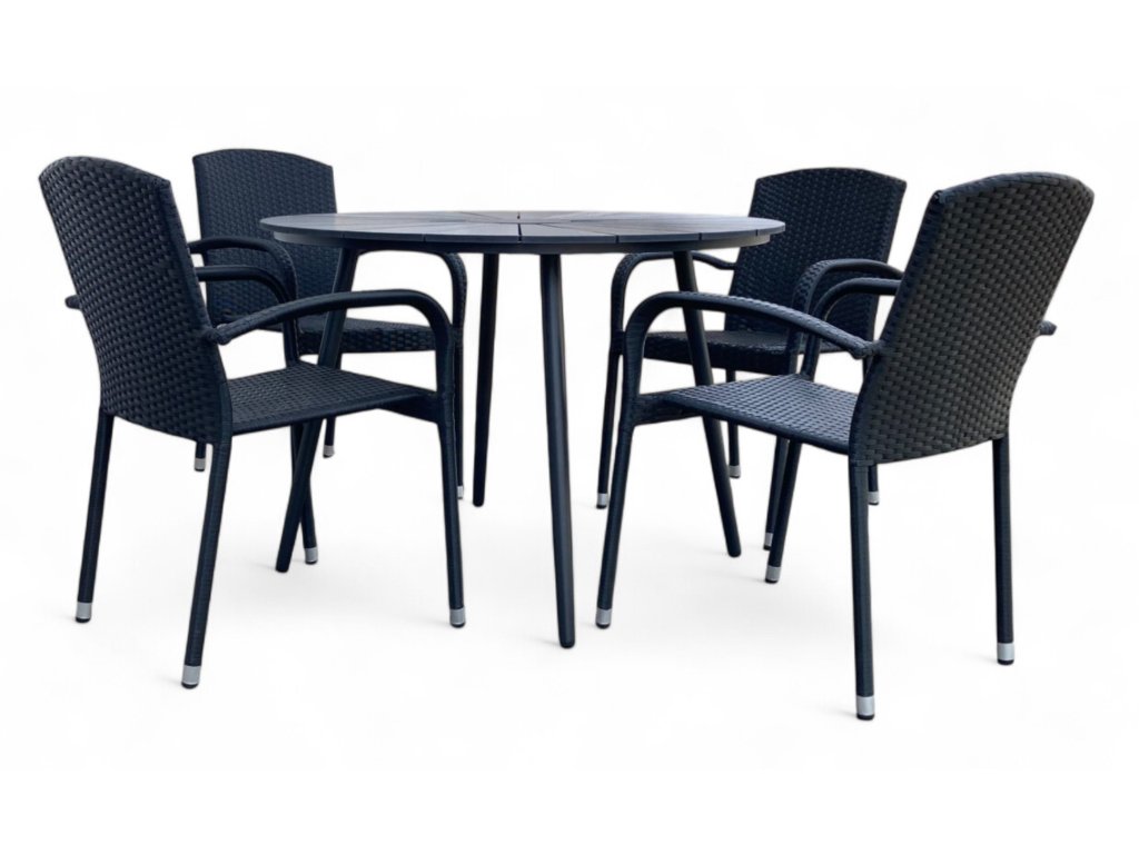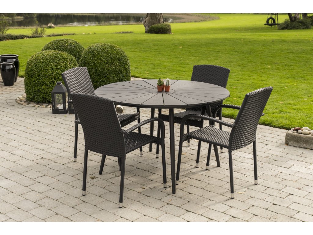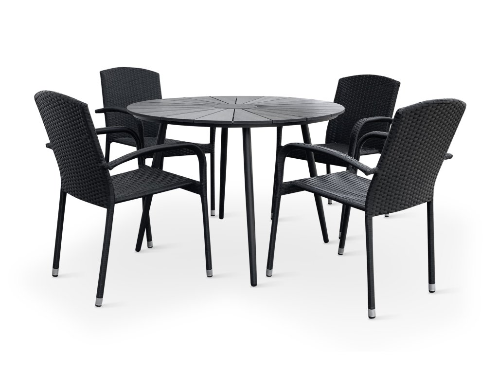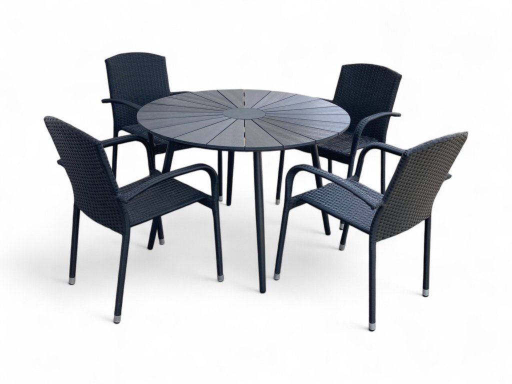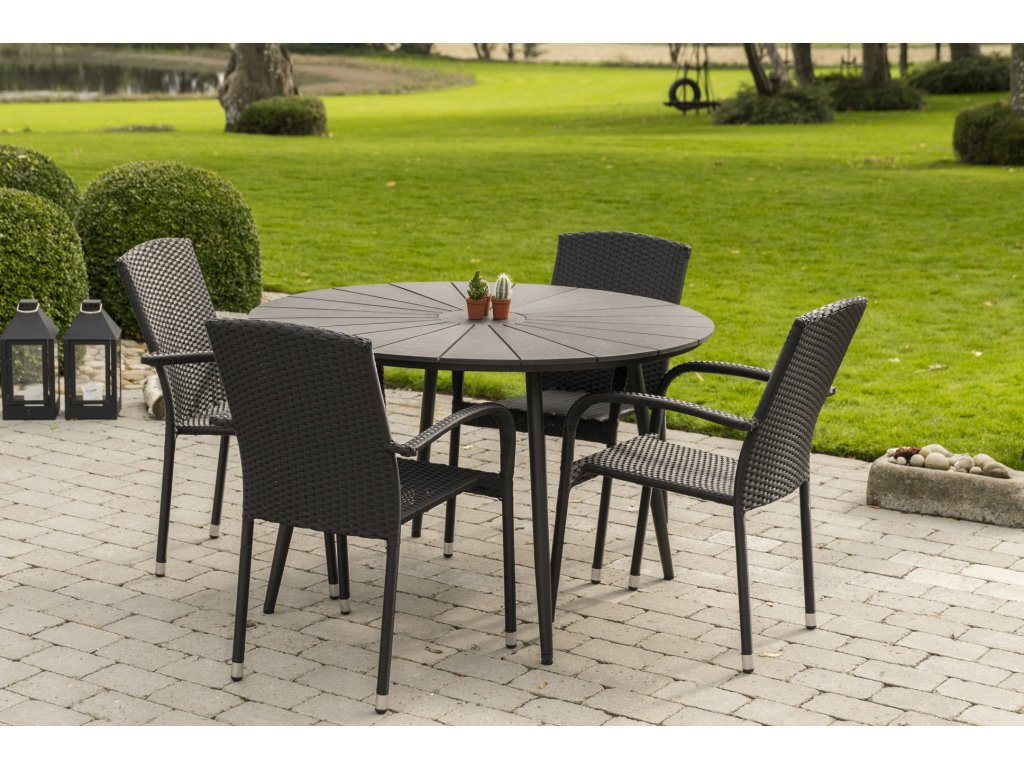 Zostavu tvorí Bezúdržbový okrúhly stôl Wilder 105cm a 4 Záhradné ratanové stoličky Roma.
