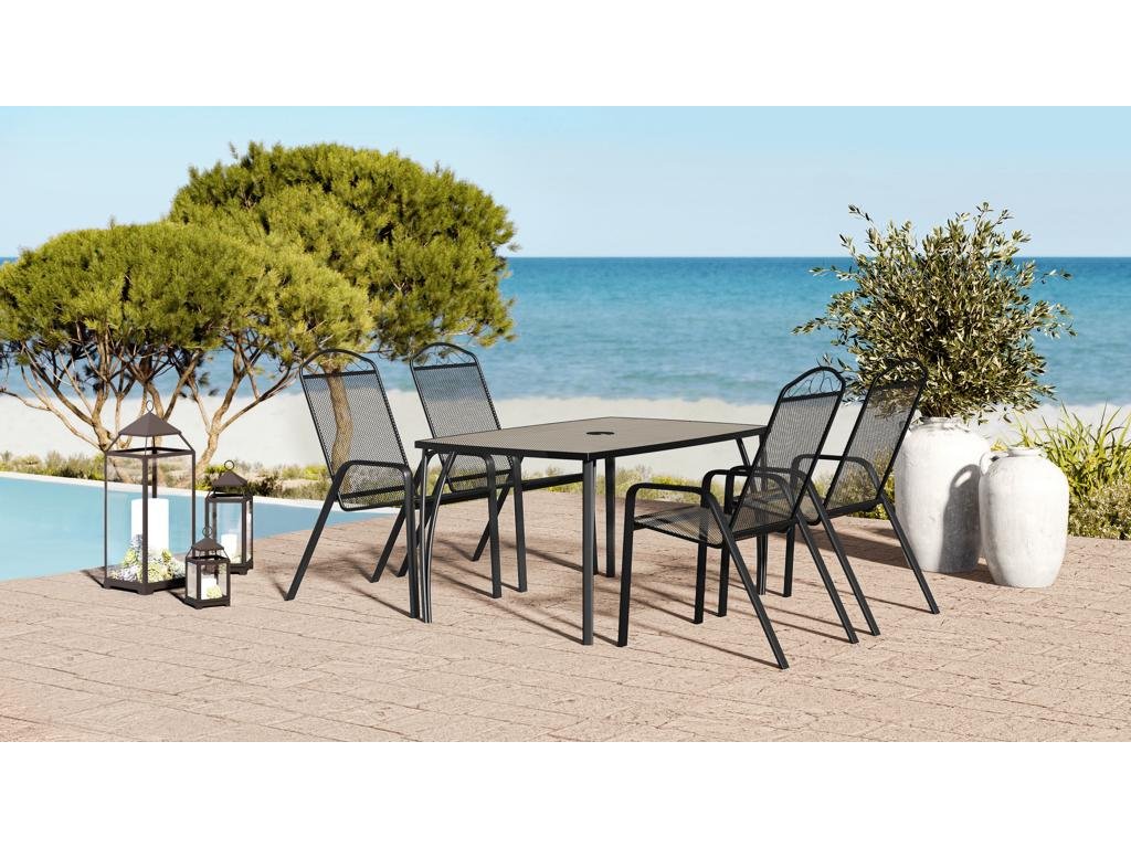 Stôl Lana steel svojim dizajnom a atraktívnym prevedením v čiernej farbe esteticky zapadne do akejkoľvek záhrady či terasy.