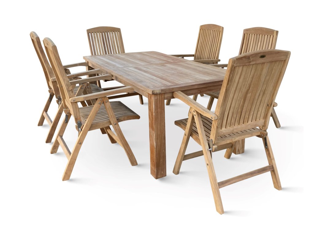 Naša teaková záhradná zostava bude ozdobou Vašej záhrady či terasy. Oceníte jej luxusný vzhľad, ale aj vynikajúce vlastnosti teakového dreva.