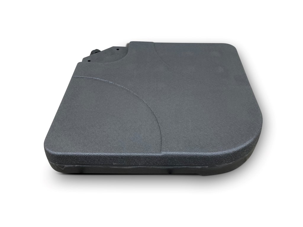 Slnečník je dodávaný vrátane 4 ks závažia z plastu na zaťaženie základne. Závažie jednoducho naplníte vodou alebo pieskom a zaistíte pomocou 4 kovových úchytov.
