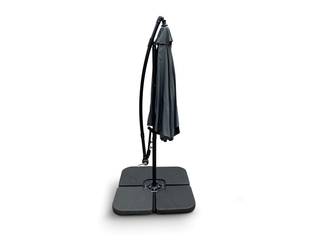 Veľmi obľúbený slnečník HOOK s priemerom 3 m poskytne účinnú ochranu pred slnkom. Jednoduchý systém otvárania slnečníka pomocou kľučky. Konštrukcia slnečníka bola vyrobená z ocelových trubiek ošetrených proti hrdzi. Tienenie zaistí odolná polyesterová látka v sivej farbe. Slnečník disponuje ventilačným otvorom vo vrchnej časti, ktorý umožňuje cirkuláciou vzduchu. Možnosť nastavenia uhla tienenia slnečníka. Oporu tvorí stabilná krížová základňa, ktorá sa nachádza mimo tienenú oblasť.
