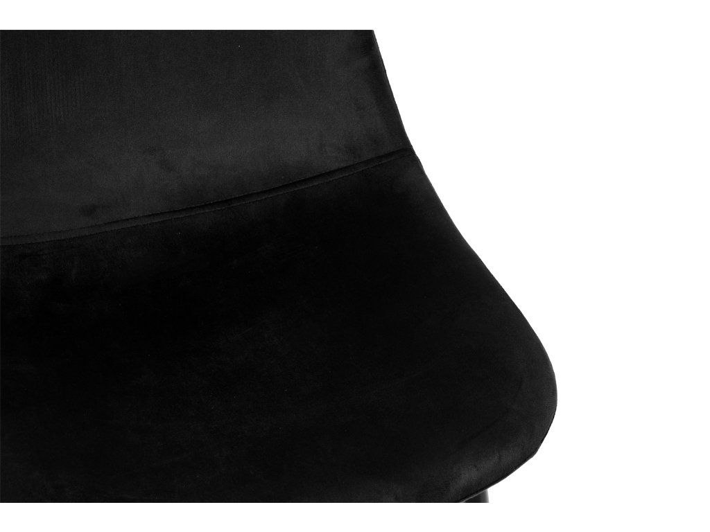 Jedálenská stolička s oceľovým podnožím v čiernej farbe so zamatovým poťahom.