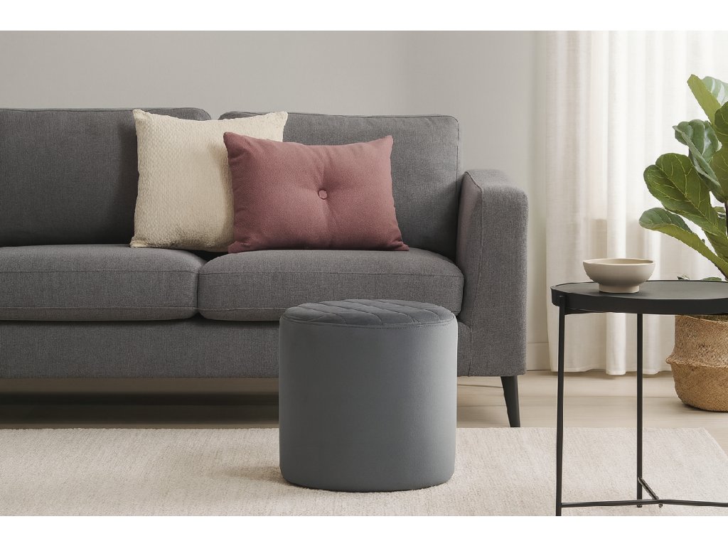 Elegantná okrúhla taburetka CUBO čalúnená jemnou zamatovou látkou v šedom odtieni. Konštrukcia je vyrobená z drevovláknitej dosky MDF. Sedák tvorí molitan so zamatovým prešívaným poťahom. Vrchná časť sedadla je zdobená decentným prešívaním do kosoštvorcov, ktoré dodáva nábytku sofistikovaný vzhľad. Vďaka kompaktným rozmerom je taburetka ľahká, ľahko premiestniteľná a zároveň dostatočne stabilná na každodenné použitie.